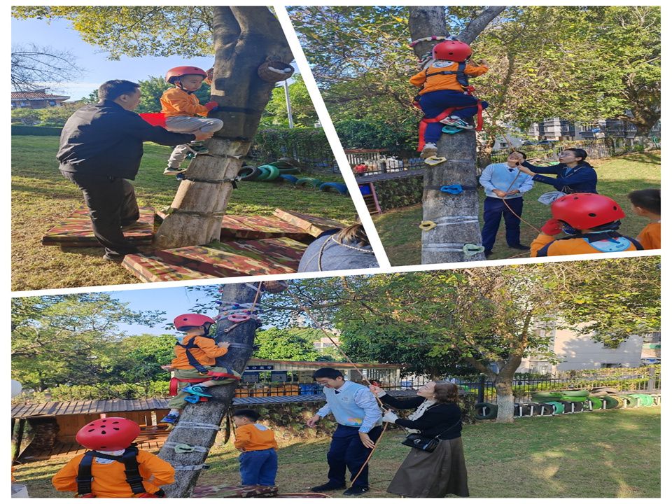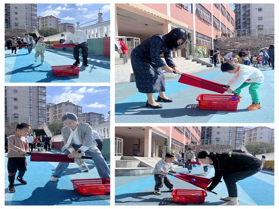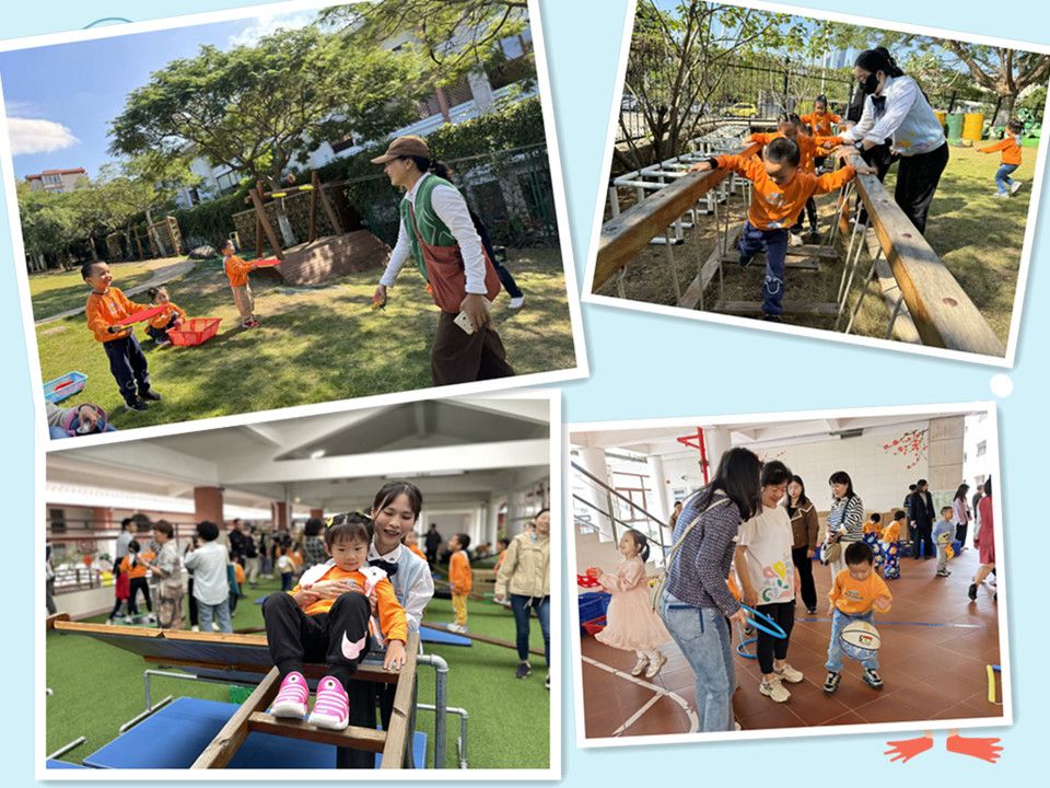 满载期望与喜悦,怀揣憧憬与构想,家长朋友们来到了孩子们成长“乐园”。映入眼帘的是快乐、自主的户外体能大循环活动。孩子们自主选材、自由结伴,在趣味性的游戏情境中发展运动能力,在家长们的陪同下,孩子们比往日更加兴奋,他们在活动中尽情体验运动带来的快乐与激情。