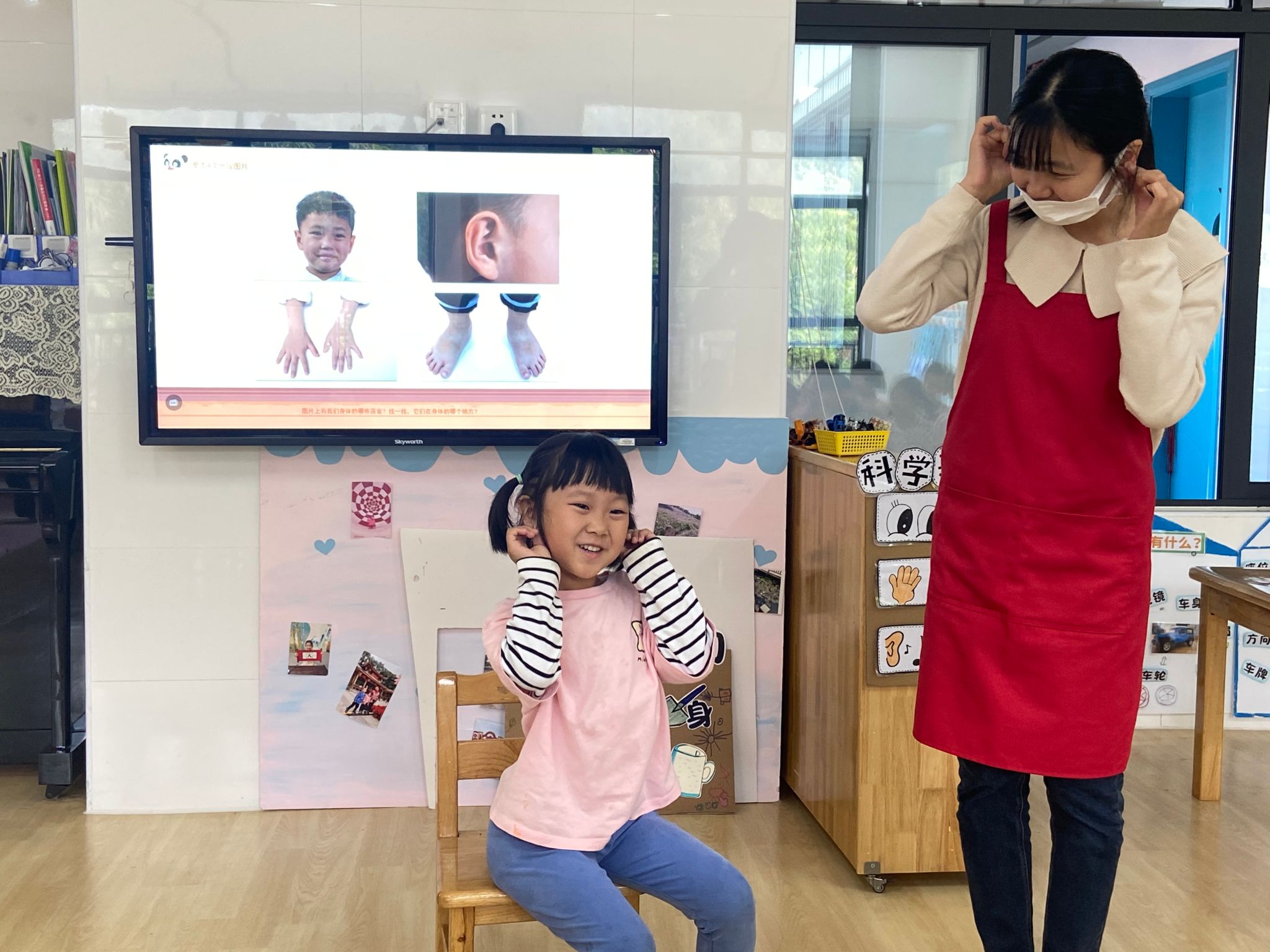 教师通过直观的图片、有趣的互动,孩子充分了解到不同的“身体宝贝”都有不同的本领,所以我们都要保护好。