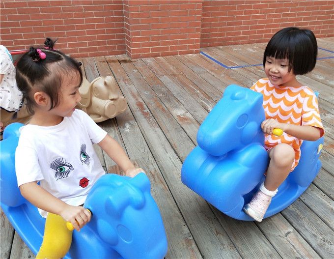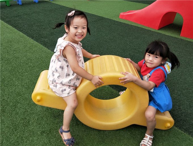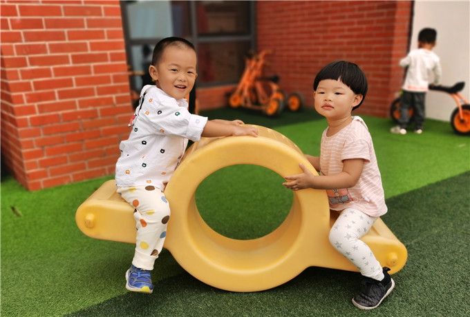 幼儿园里的小汽车、跷跷板、滑滑梯、独木桥、小山坡都成了小宝贝们的“新朋友”。