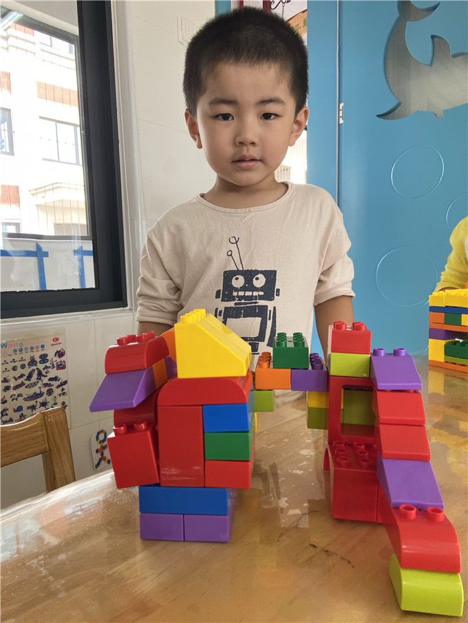 “老师你看,我拼得房子厉害不!”