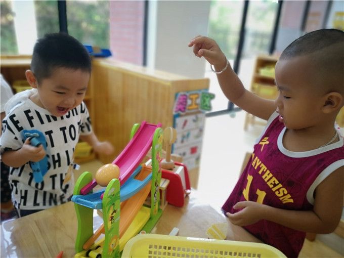 宝贝们已经逐渐适应了这个大家庭,一切看起来井然有序……区域时间到啦,对于区域里那么多色彩鲜艳又有趣的玩具,宝贝们不亦乐乎。