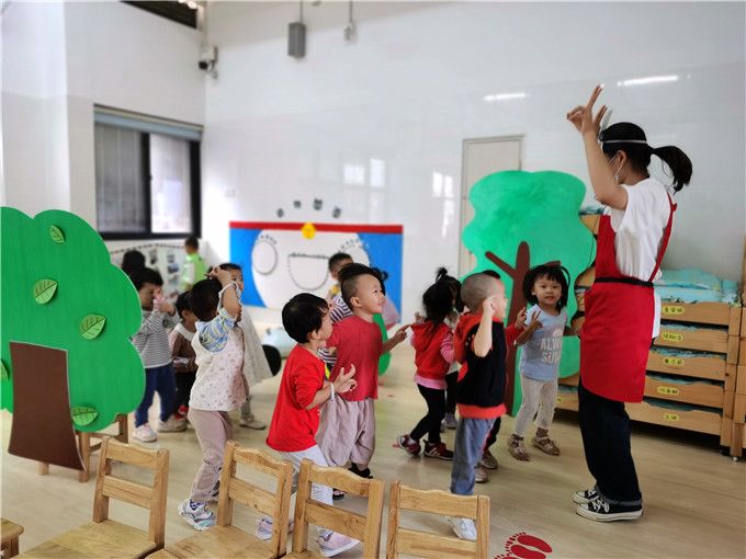 老师们正带着我们的小宝贝们在玩音乐游戏呢。