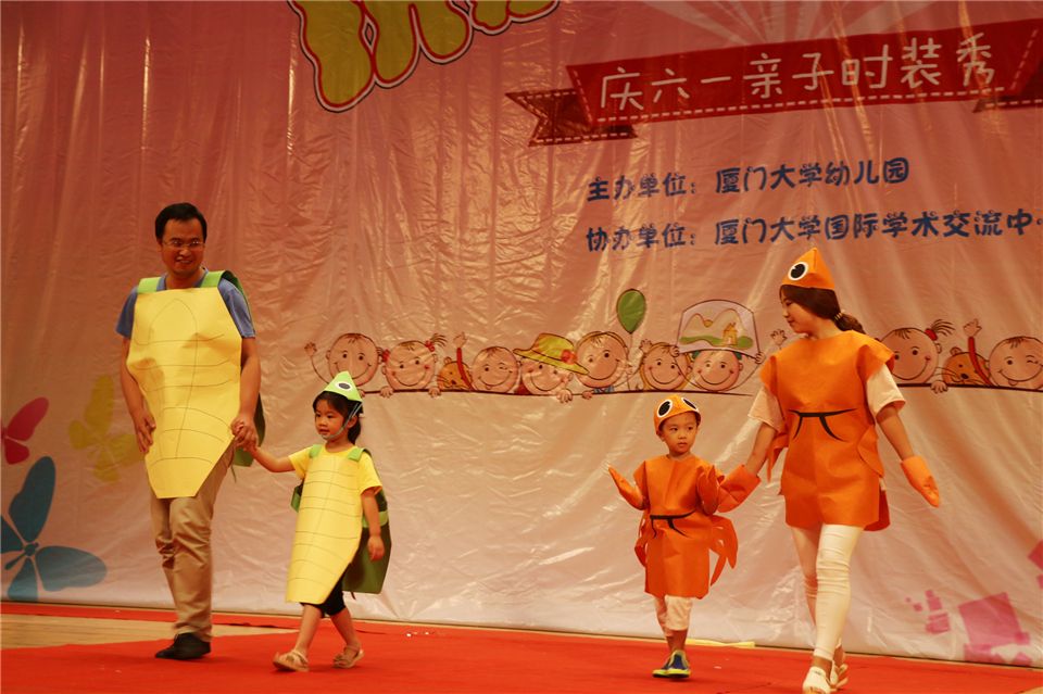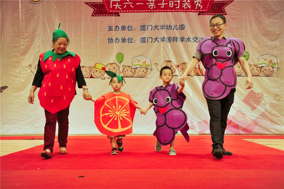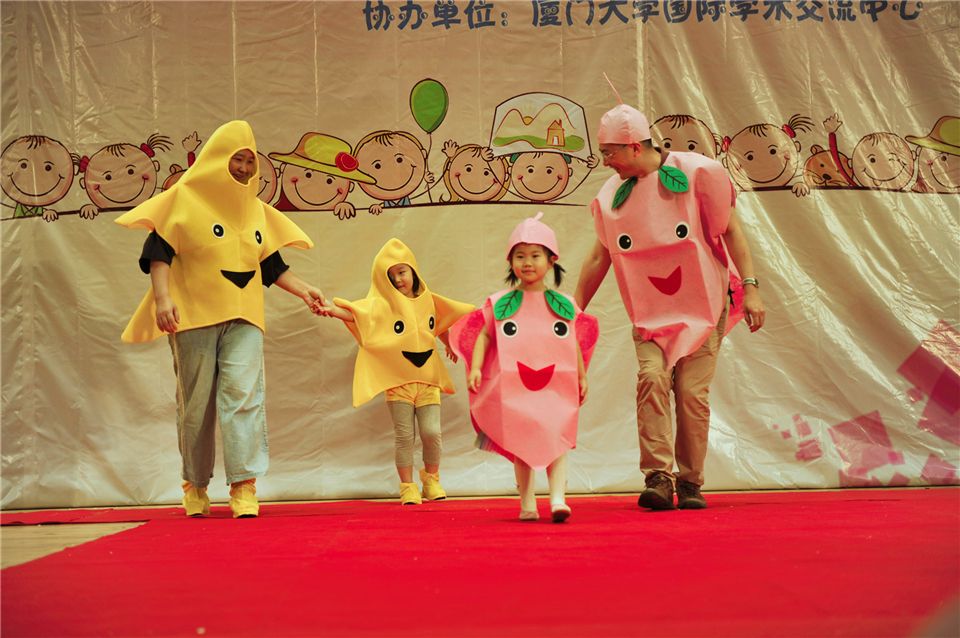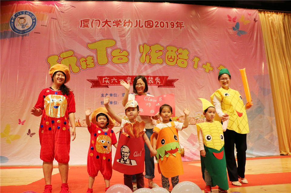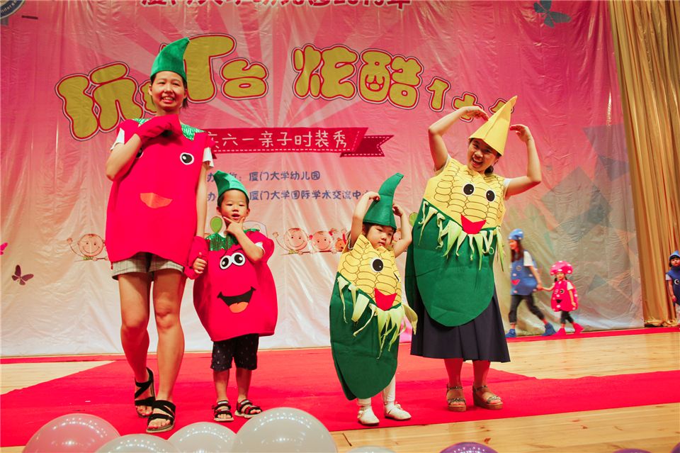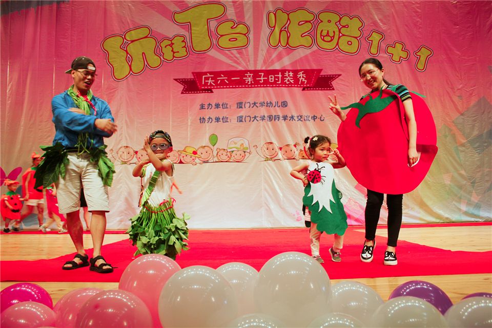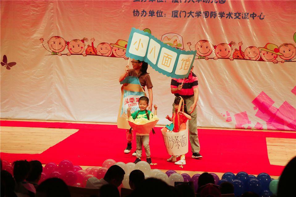 接着,一场《美食盛宴》开始啦!有的萌娃变身成多种多样的蔬菜;有的萌娃化身成好吃的水果;有的萌娃摇身一变,成了美味甜点;还有的萌娃和爸爸妈妈们把厦门特色小吃店搬上了舞台,火锅、厦门泡面等等应有尽有,你要不要来一份?