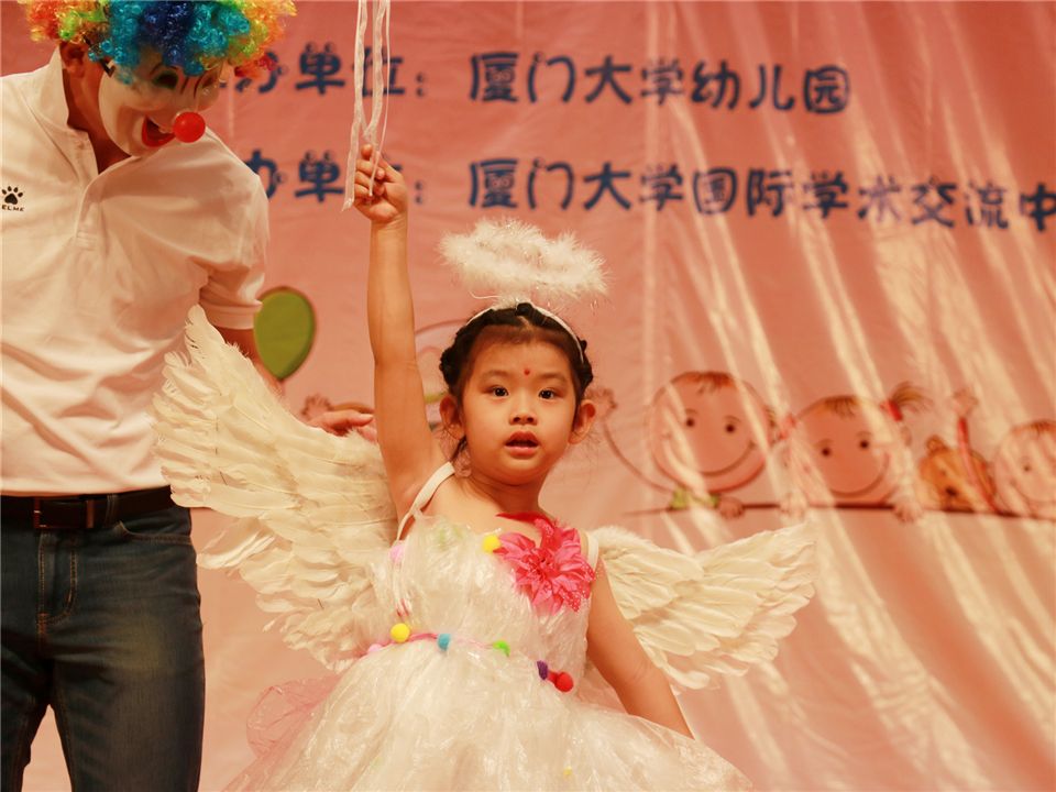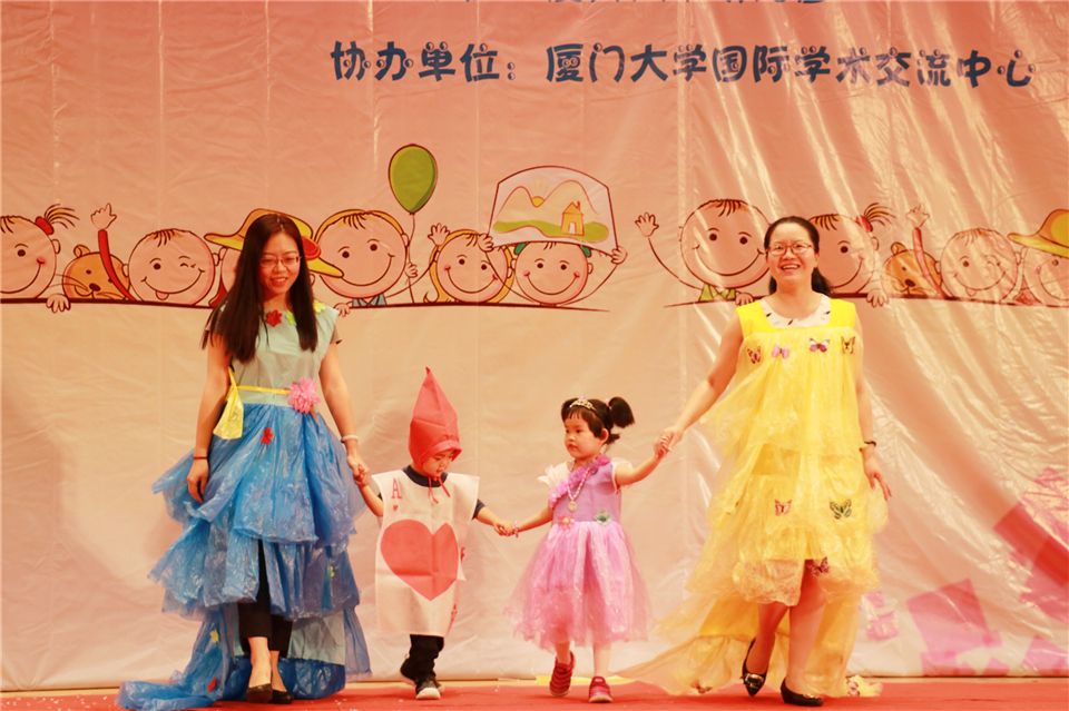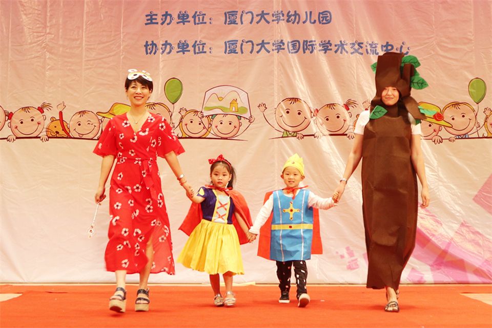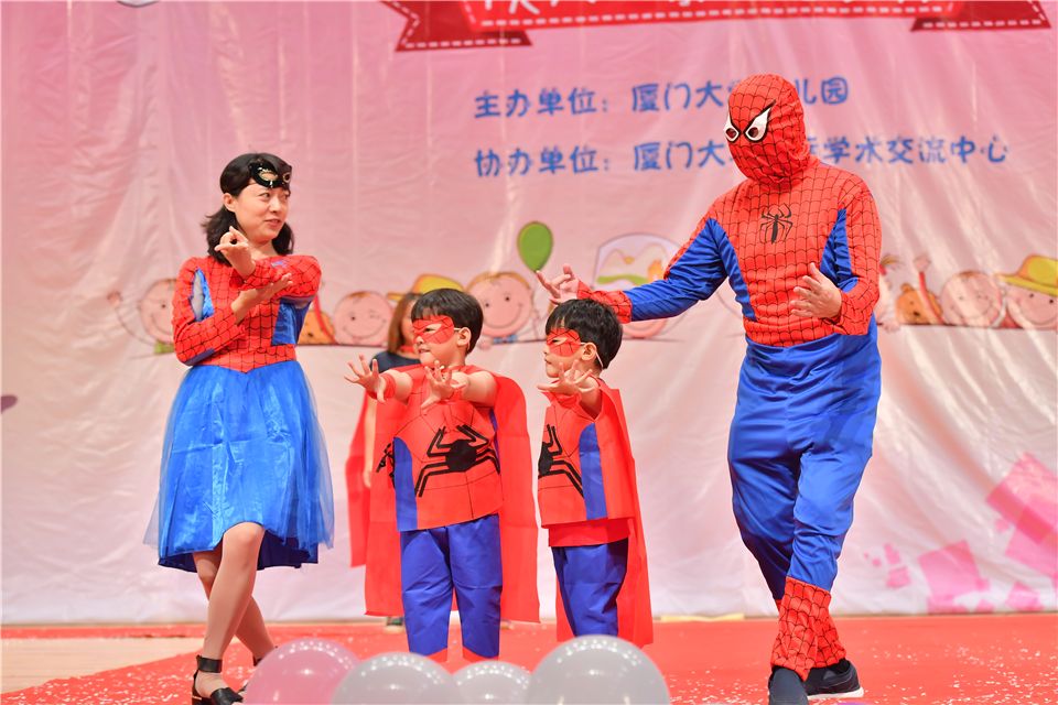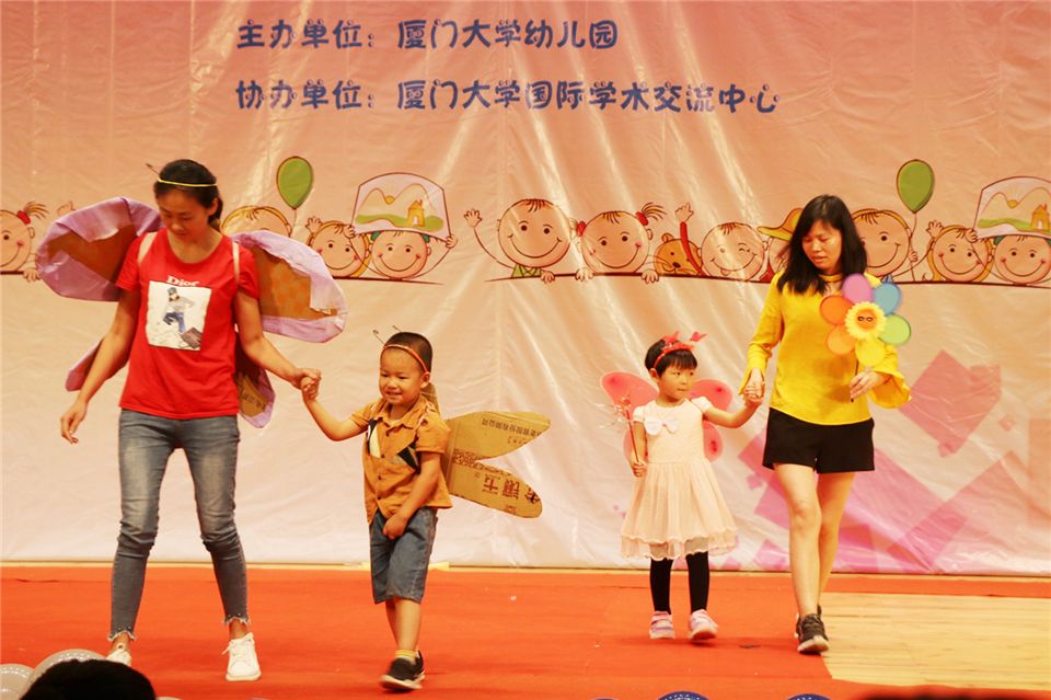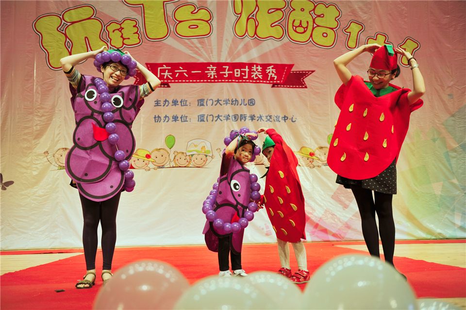 接着,一场《美食盛宴》开始啦!有的萌娃变身成多种多样的蔬菜;有的萌娃化身成好吃的水果;有的萌娃摇身一变,成了美味甜点;还有的萌娃和爸爸妈妈们把厦门特色小吃店搬上了舞台,火锅、厦门泡面等等应有尽有,你要不要来一份?