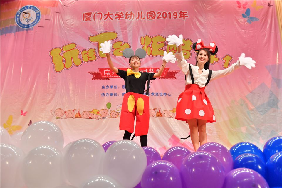 主持人赵燕燕老师闪亮登场,同时登场的还有托小段的老师代表们,她们演绎的《童趣世界》通过一群激萌童趣的卡通人物,为过节的萌娃和家长们带来无限回忆。他们是调皮的玛丽兄弟、温柔可爱的白雪公主、迪士尼乐园里的米奇米妮,哪个是你们的最爱呢?