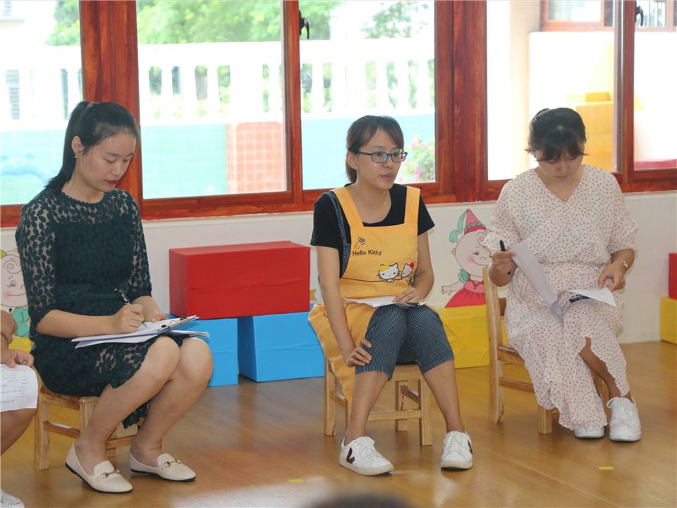 活动结束后,思明区早期教育指导服务中心的杨慧老师组织到场观摩的老师共同参与研讨。首先,杨老师对活动各环节的目标和设计思路进行了逐一的介绍。