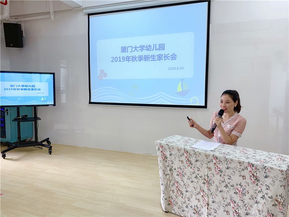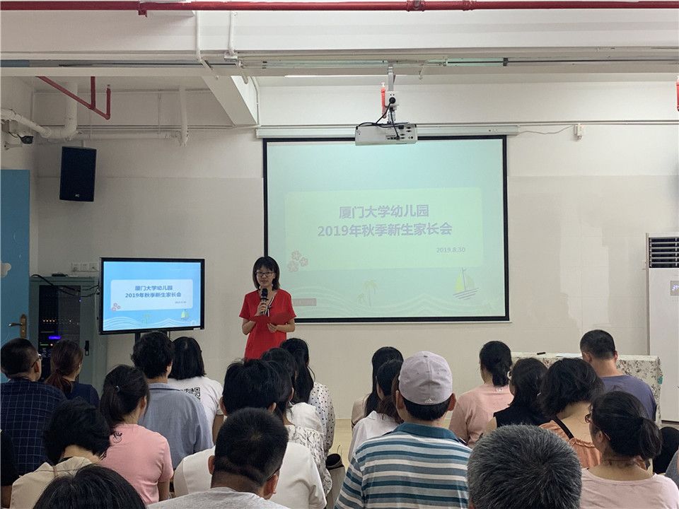 宝贝们从家庭走进幼儿园是他们踏入社会的人生第一步,为使宝贝们尽快适应幼儿园生活以及帮助家长树立正确的育儿观,密切家园联系,提高教育合力,8月30日上午,厦门大学幼儿园翔安部在多功能厅召开了新生家长会,此次家长会由本学期翔安部主要负责人杨副园长主持。