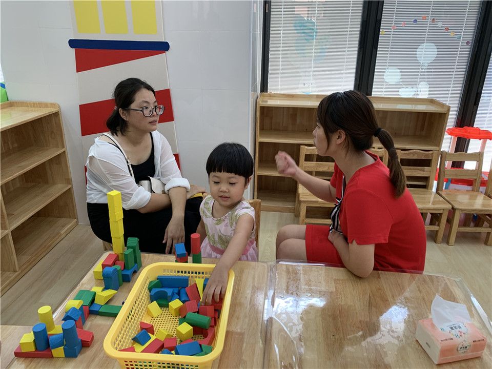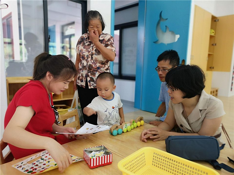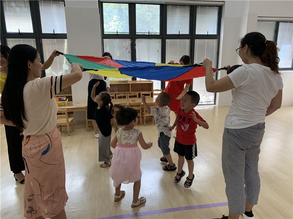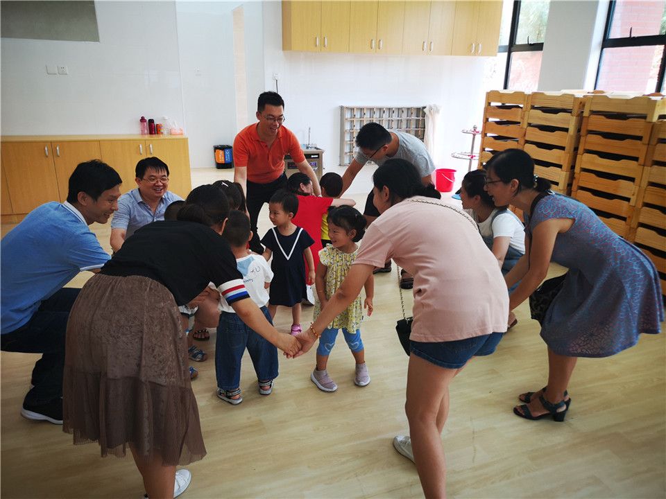 在轻松愉快的小游戏——“一比‘压压’一比一比‘压’”、“一比‘捏捏’一比一比‘捏’”的互动中,家长们放松了第一次要将宝贝送入幼儿园的紧张心情,也拉进了彼此的距离。