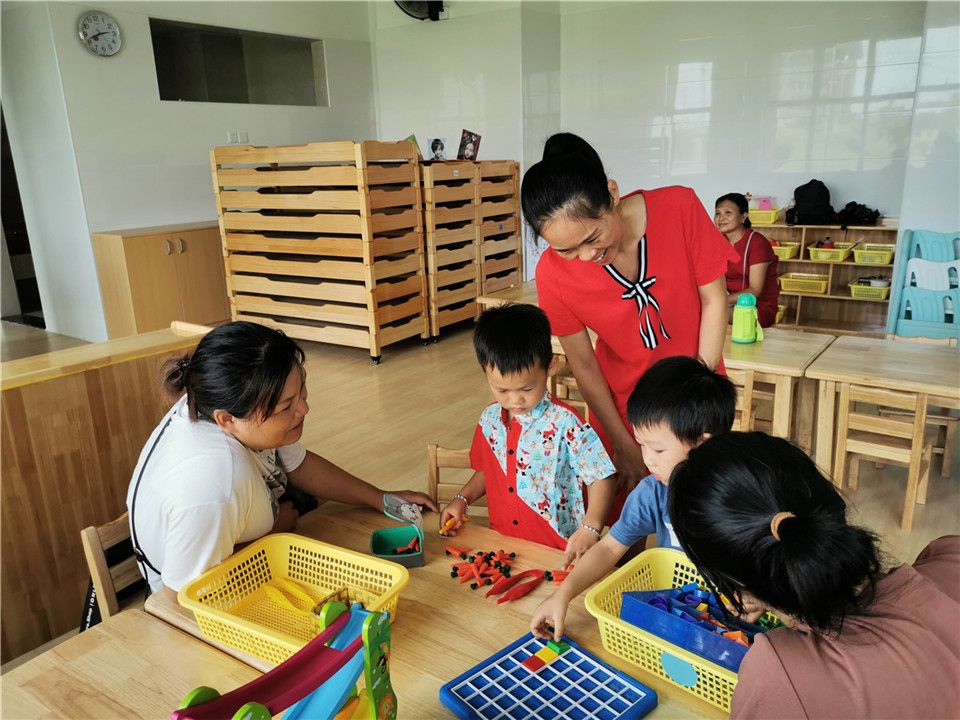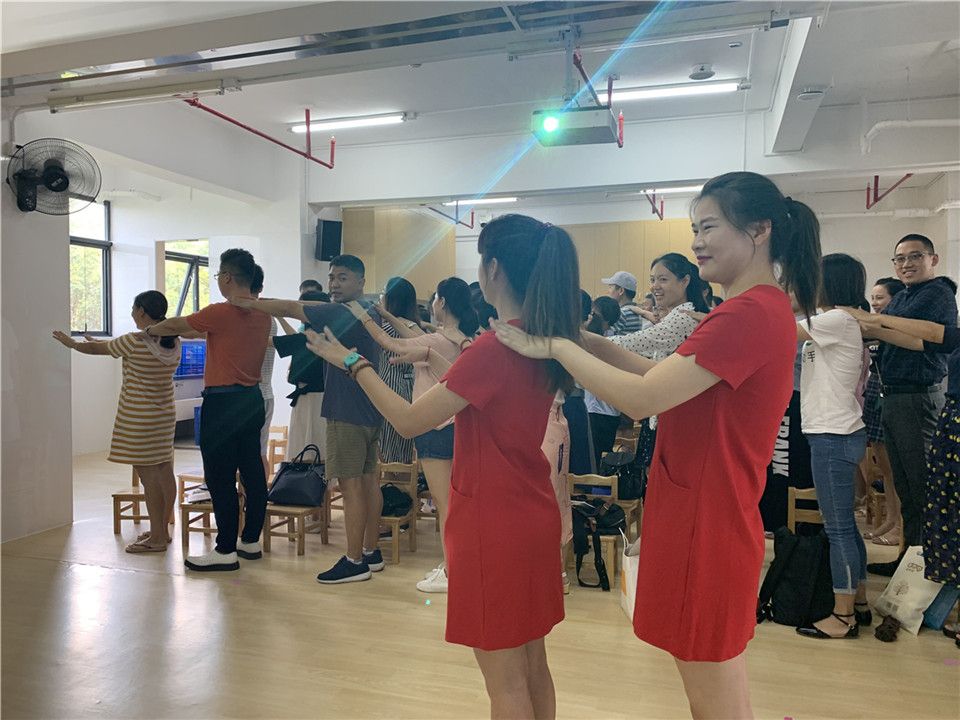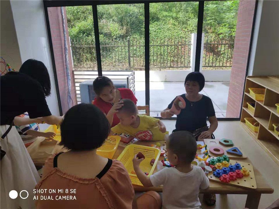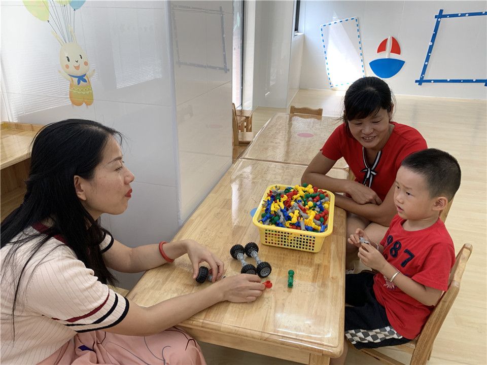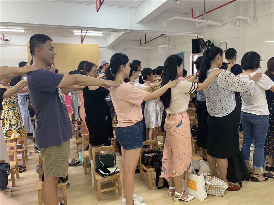 在轻松愉快的小游戏——“一比‘压压’一比一比‘压’”、“一比‘捏捏’一比一比‘捏’”的互动中,家长们放松了第一次要将宝贝送入幼儿园的紧张心情,也拉进了彼此的距离。