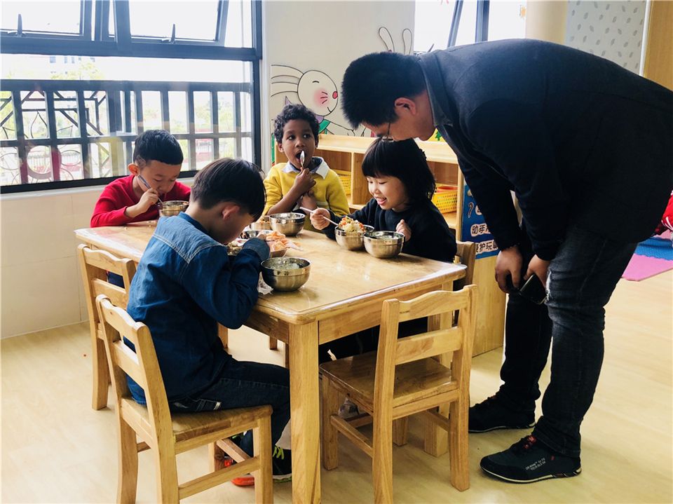 家委5:和食堂经理一起共进午餐,聆听为孩子们准备点心和午餐的故事。专门配人,层层试吃,送餐掐点,趁热保鲜;营养配餐系统来测算,保健医生来督餐;坚持原则,营养先行,再添花样;严格规定,材料留样,成品留样;亏损也要为宝宝做最放心的餐品!