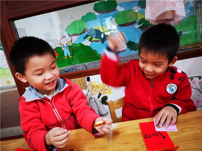 此外,老师们也收到了新年的祝福礼哦!一张小小的贺卡,一个甜蜜蜜的巧克力,都凝聚着满满的爱与温情。大朋友和小朋友们欢聚一堂,喜笑颜开、其乐融融!