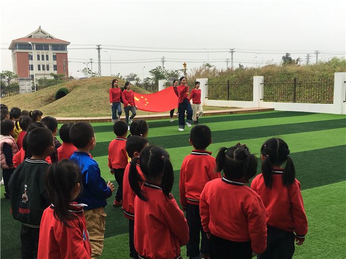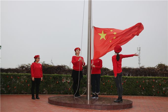 迎面走来的是由老师们组成的国旗护卫队,英姿飒爽、意气风发。在国旗的映衬下,显得格外的光彩动人。