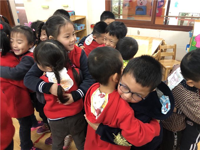 回到班级里,福娃看到了老朋友,交到了新朋友。热情地和老师、同伴拥抱、寒暄,状态迅速切回了开学模式。