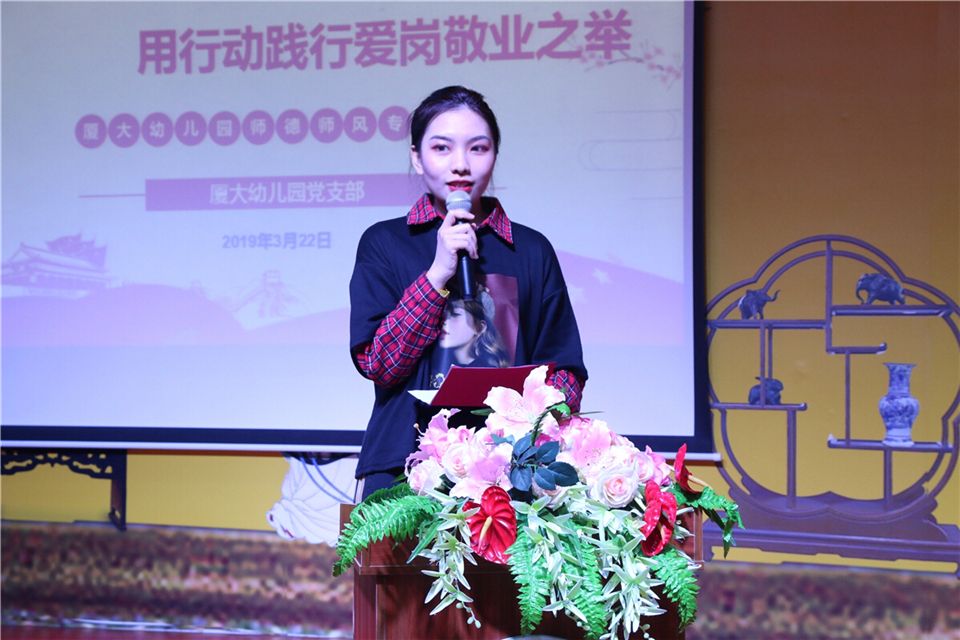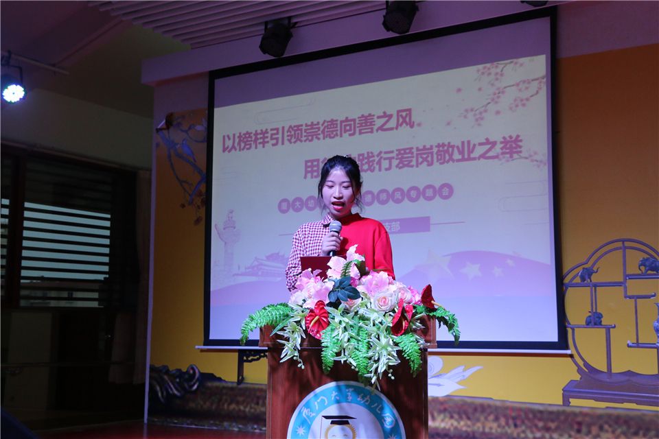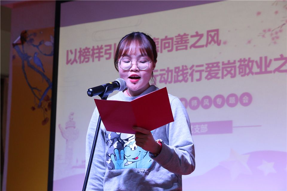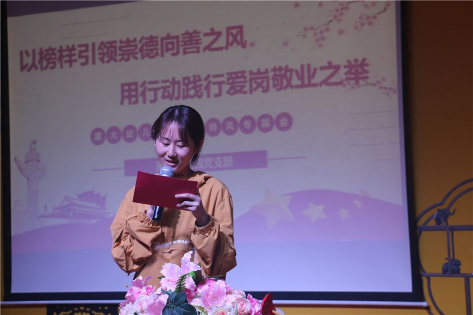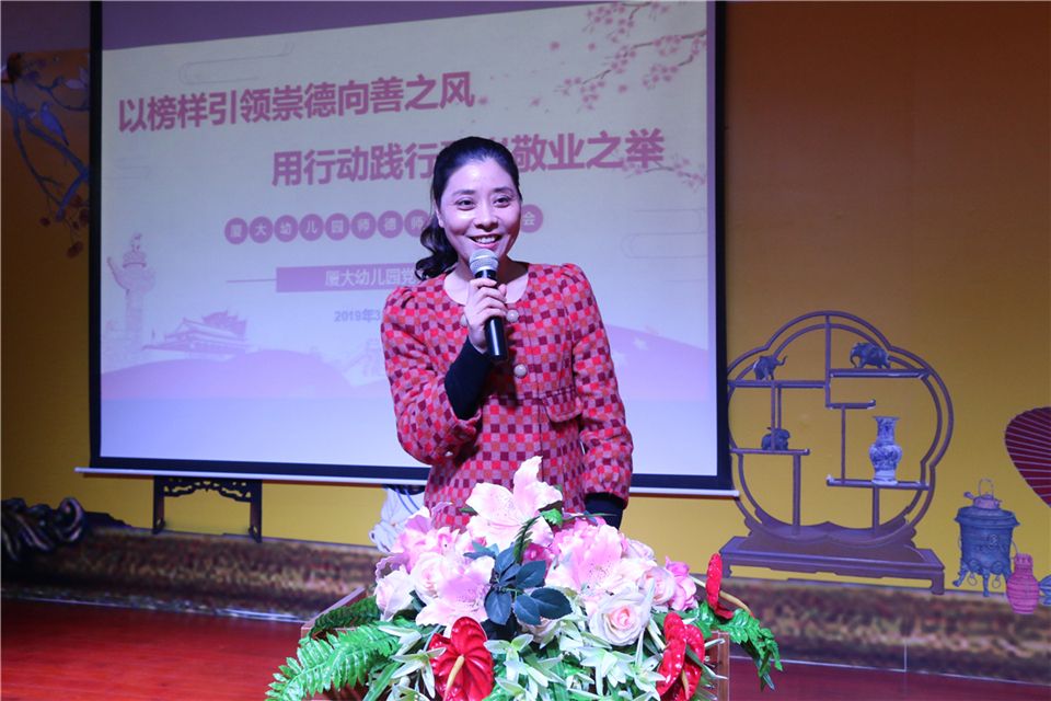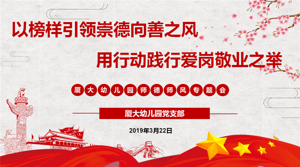 为了进一步落实立德树人的根本任务,提高教师的思想道德修养,营造良好的师德师风氛围,促进教师素质全面提高,2019年3月22日下午,我园开展了主题为“以榜样引领崇德向善之风·用行动践行爱岗敬业之举”的师德师风专题活动。活动由党支部书记郑诚燕主持,全体教职员工参加了此次活动。