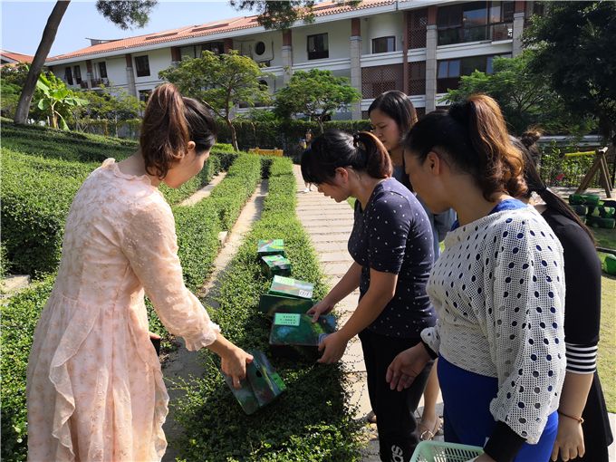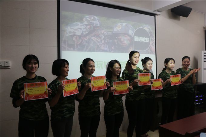 在紧张而又稚趣的游戏中,老师们不忘带着问题思考:游戏材料是否适宜?要如何优化、拓展福娃们更喜爱的游戏?经过来回激烈的角逐,“霸王花”队最终获胜!