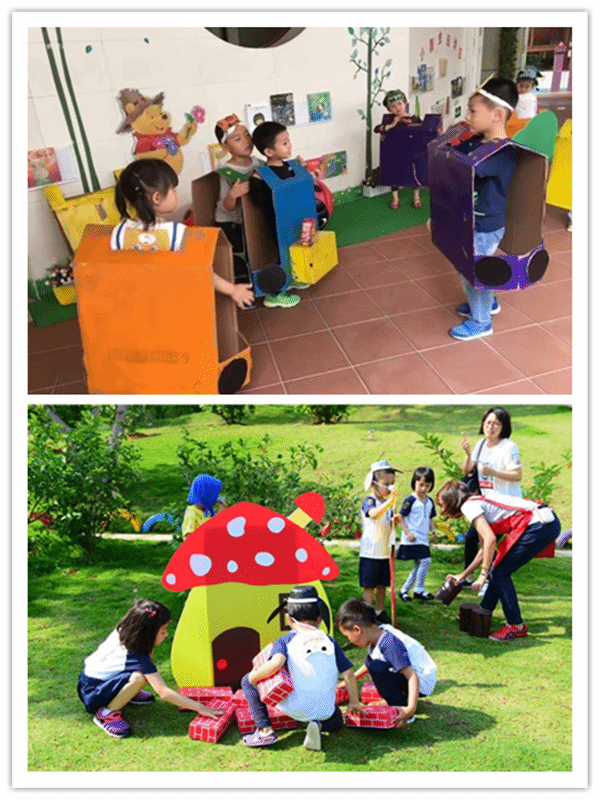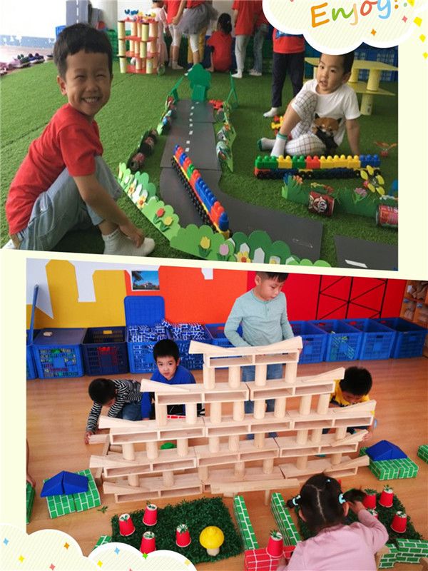 “看,我们搭的建南礼堂酷毙了!听说,我们幼儿园的'金砖娃儿'曾经在这里表演过节目呢!”