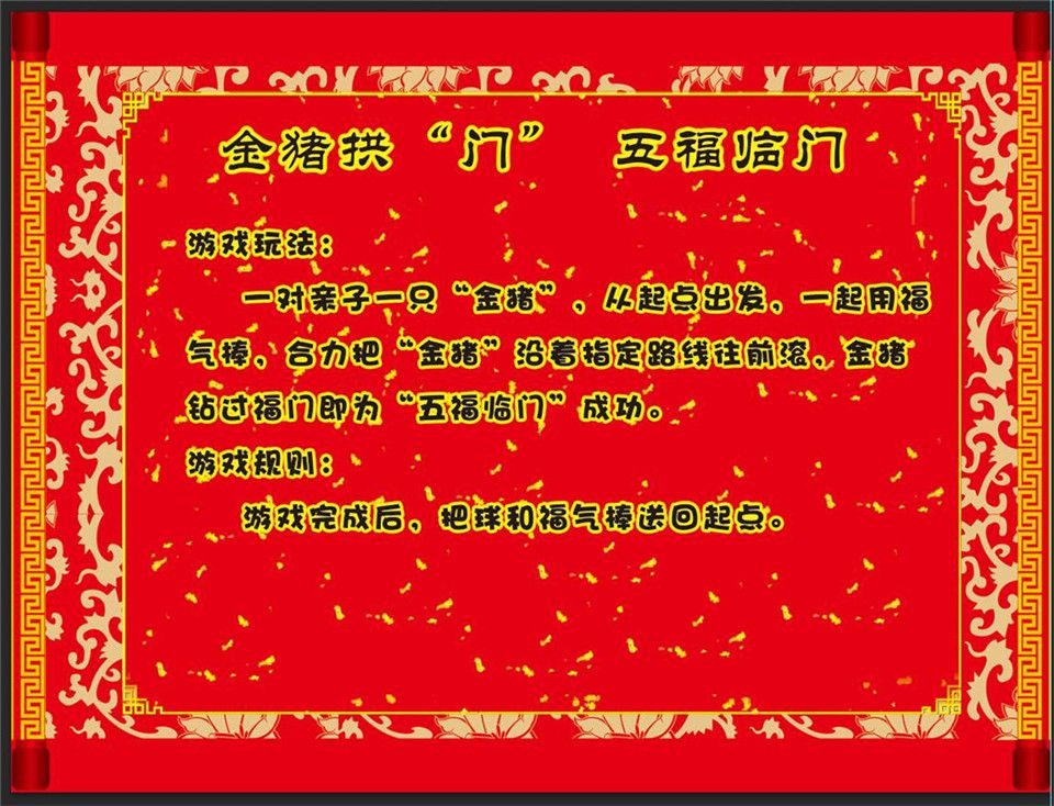 3.福娃们参与完6个游戏项目后,就可以凭金猪游园卡到一楼门厅“奖品领取处”领取属于福娃的大奖品——神秘新年礼物。