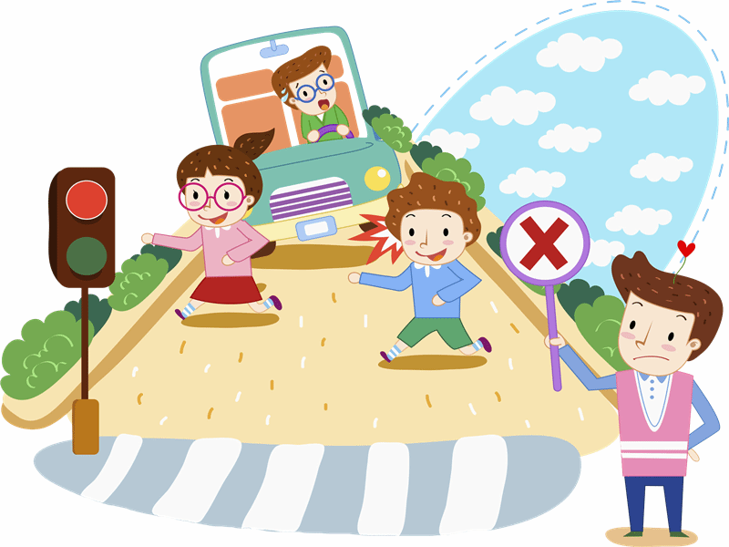 教育孩子遵守交通规则,过马路时根据交通指示信号灯行动,走斑马线;乘坐公交车时,注意上下车时的交通安全;严禁孩子在道路上追逐、打闹、玩耍!