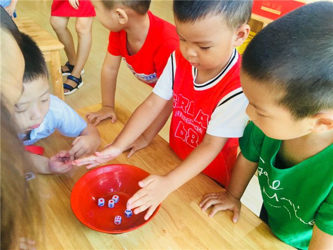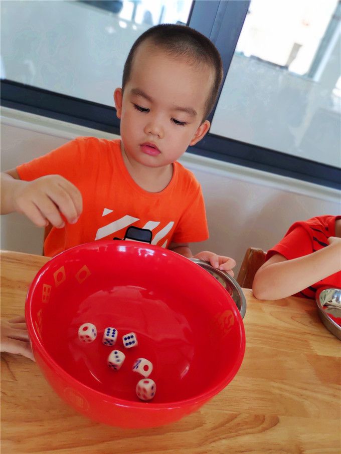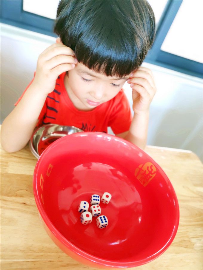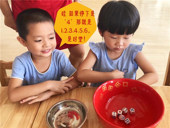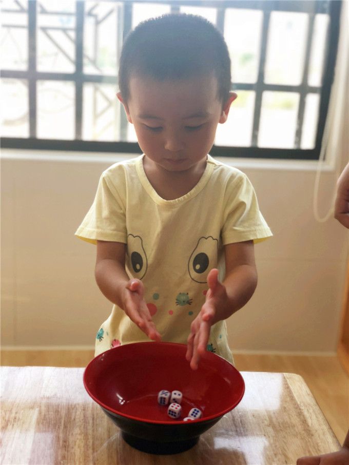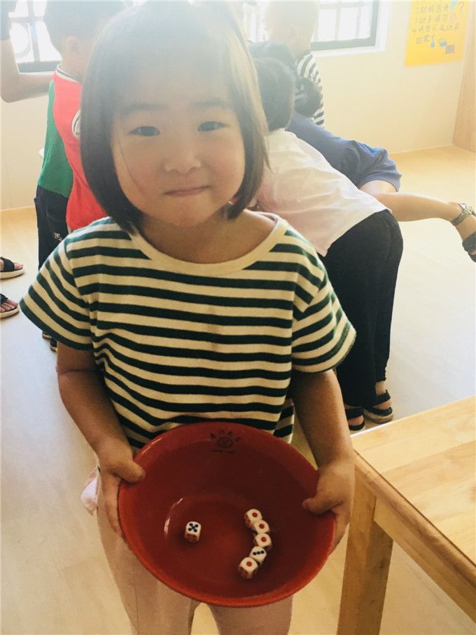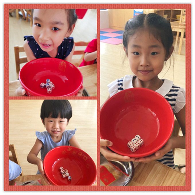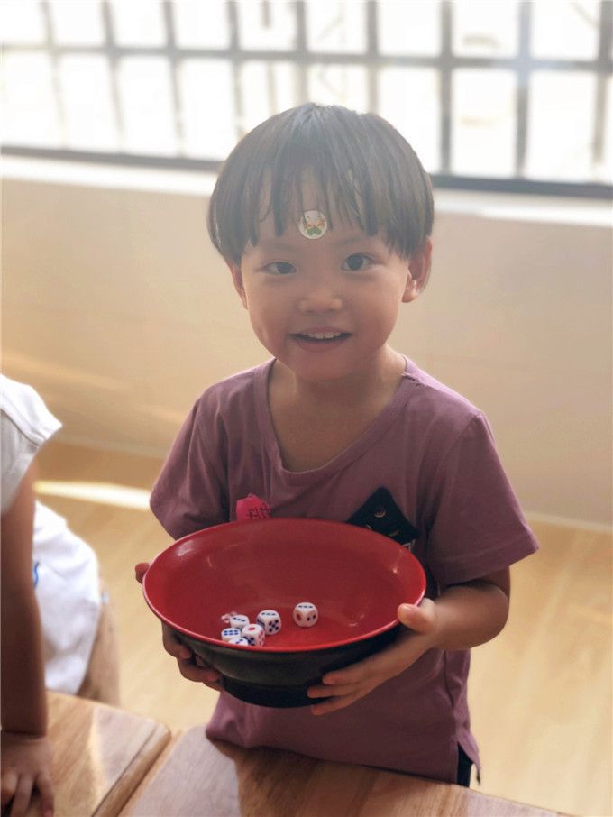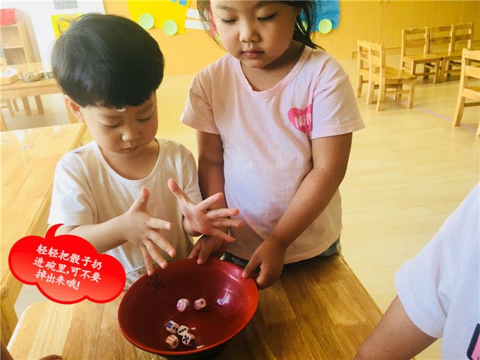老师拿出骰子和碗,小班的小哥哥、小姐姐就迫不及待地围拢开博啦!