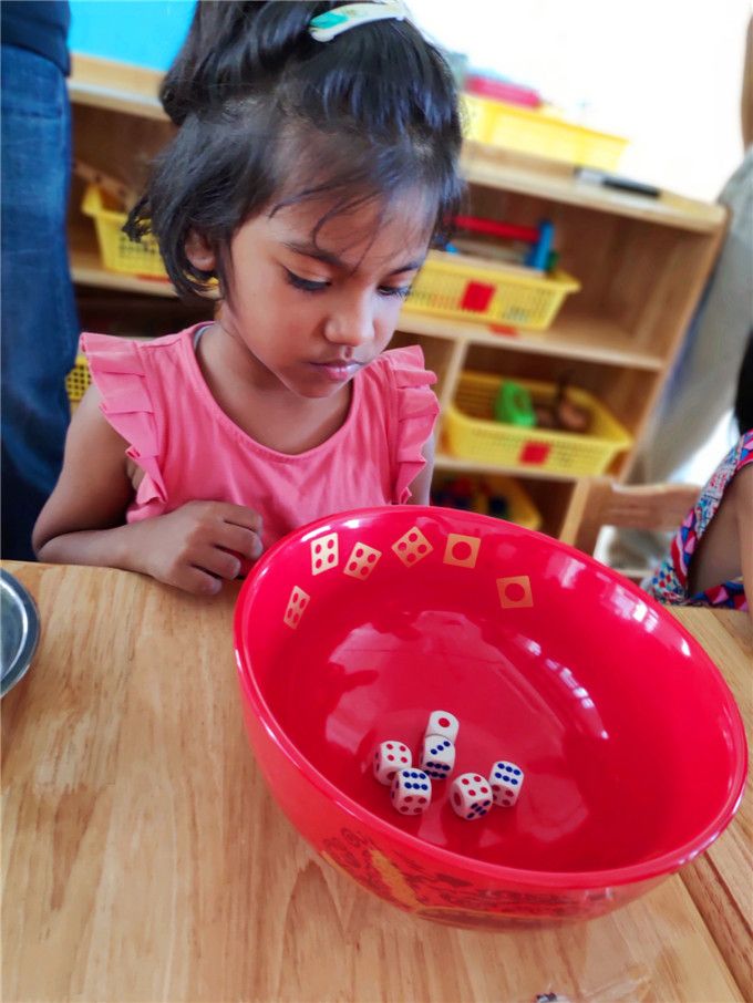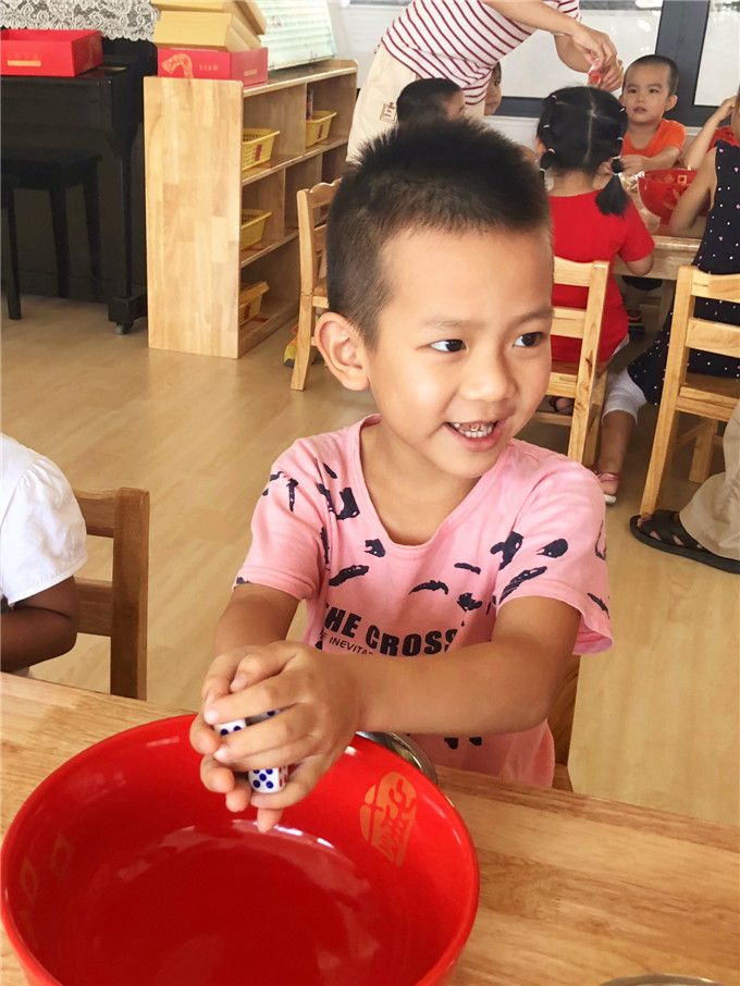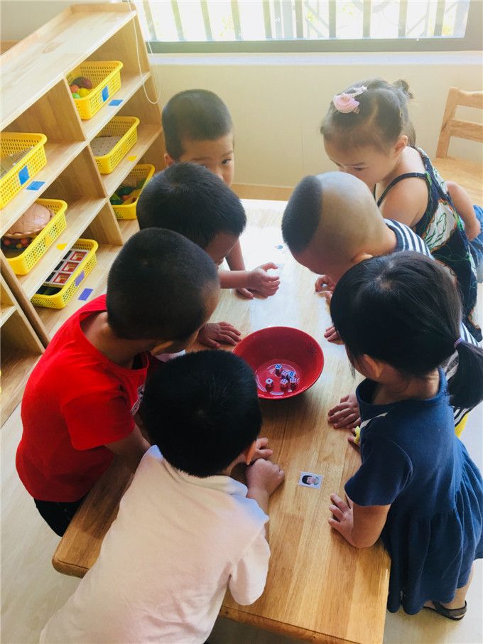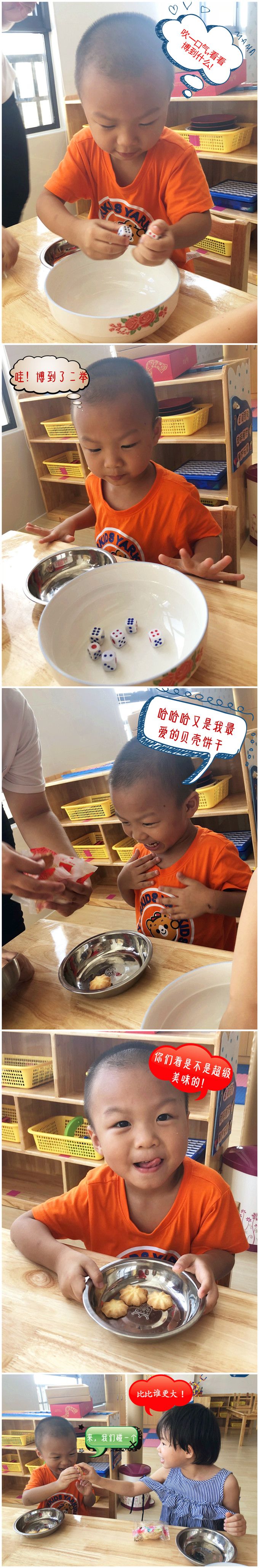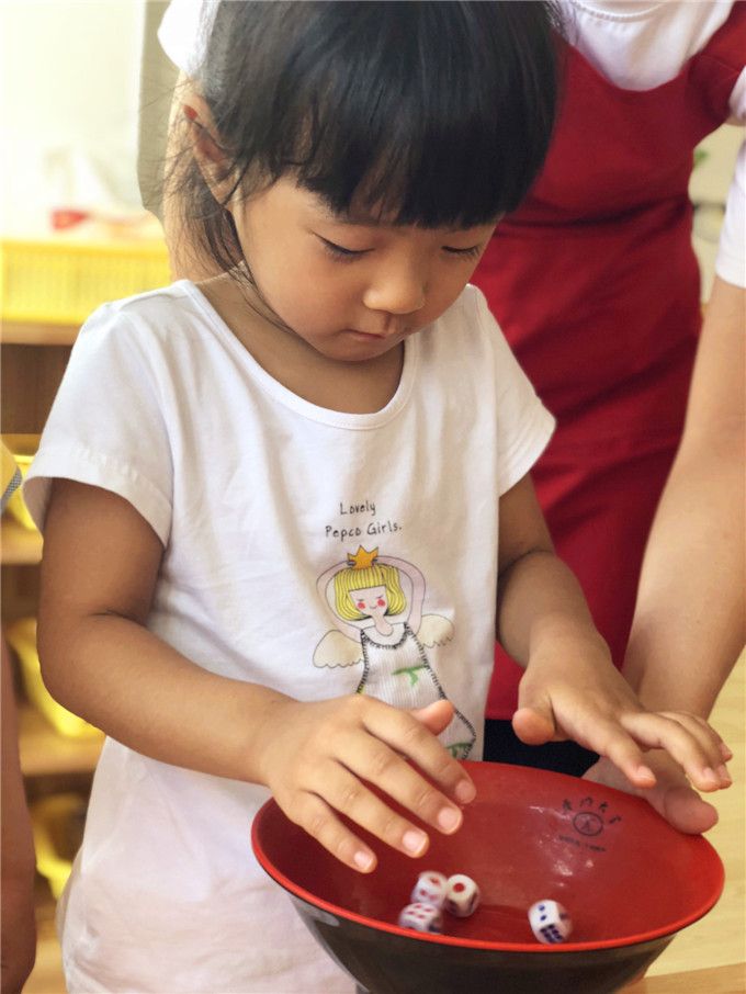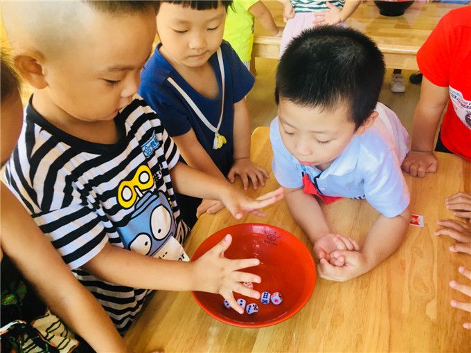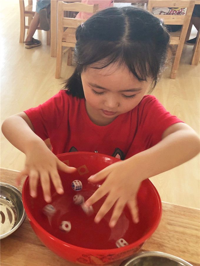 老师拿出骰子和碗,小班的小哥哥、小姐姐就迫不及待地围拢开博啦!