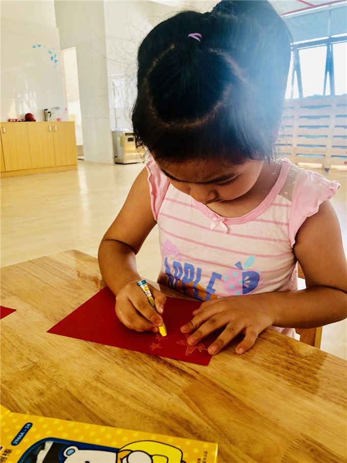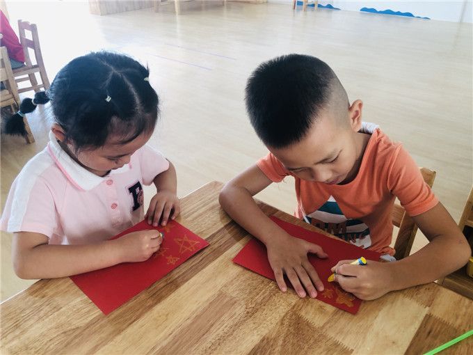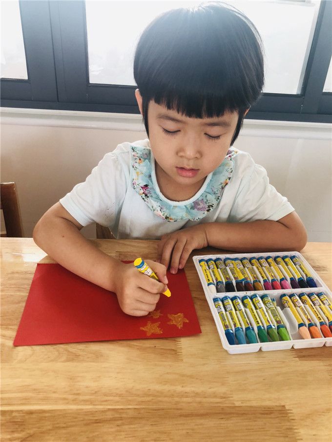 “我把小彩旗挂在窗户上,庆祝祖国妈妈的生日。”