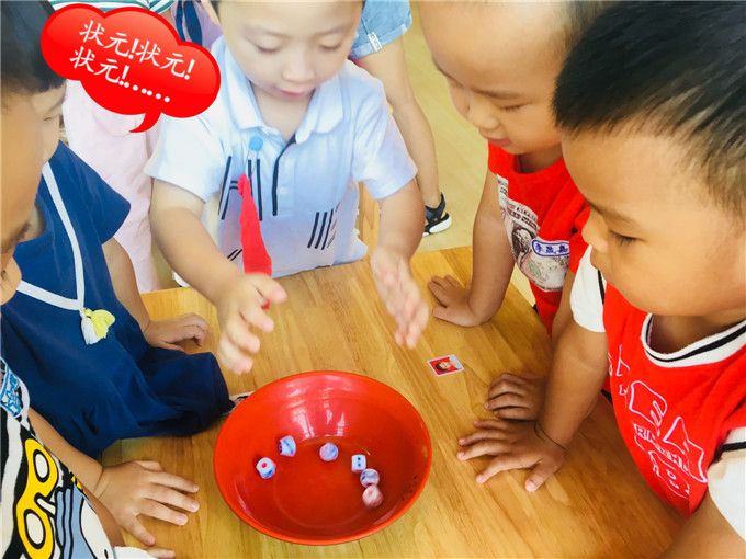 中大班的哥哥姐姐更是厉害啦!懂得博饼的游戏规则后,博饼变得更有趣味了。