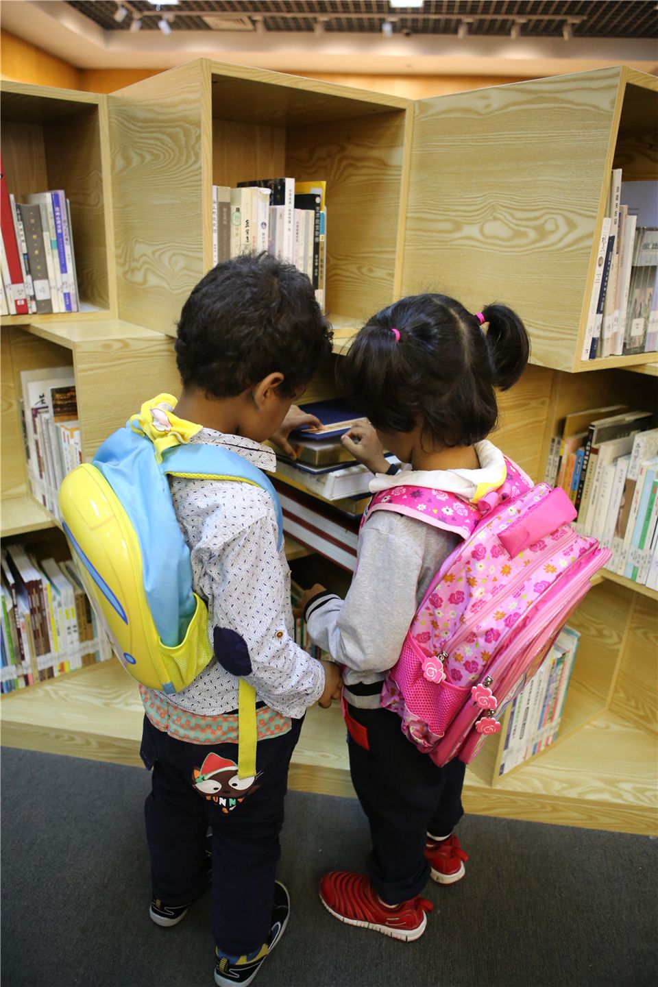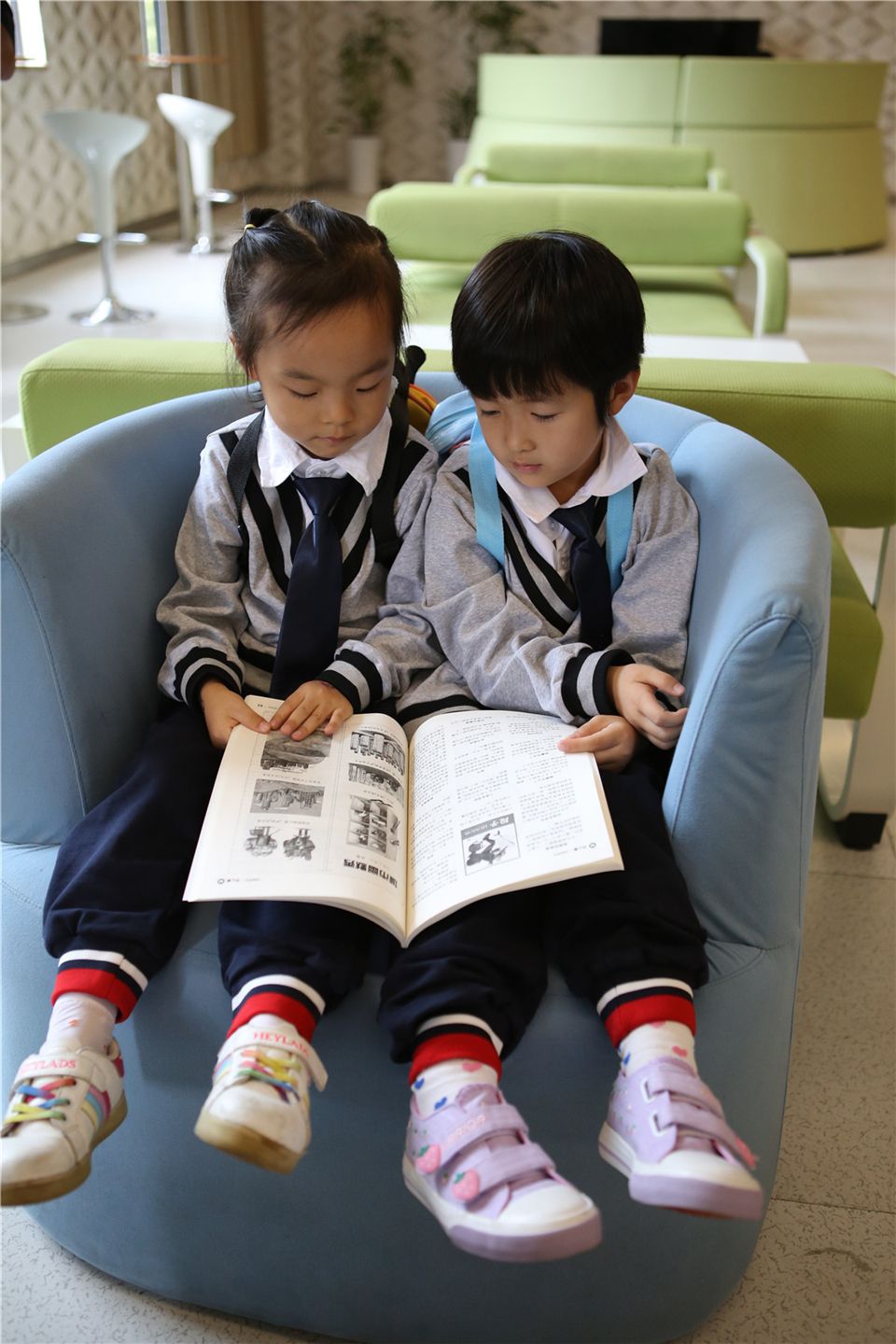 安静阅读的大学生哥哥姐姐们与我们徜徉在书海中,形成一幅和谐、美好的画面。