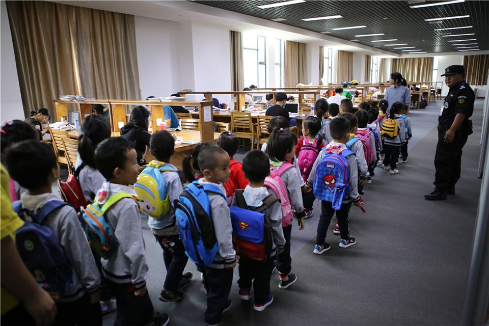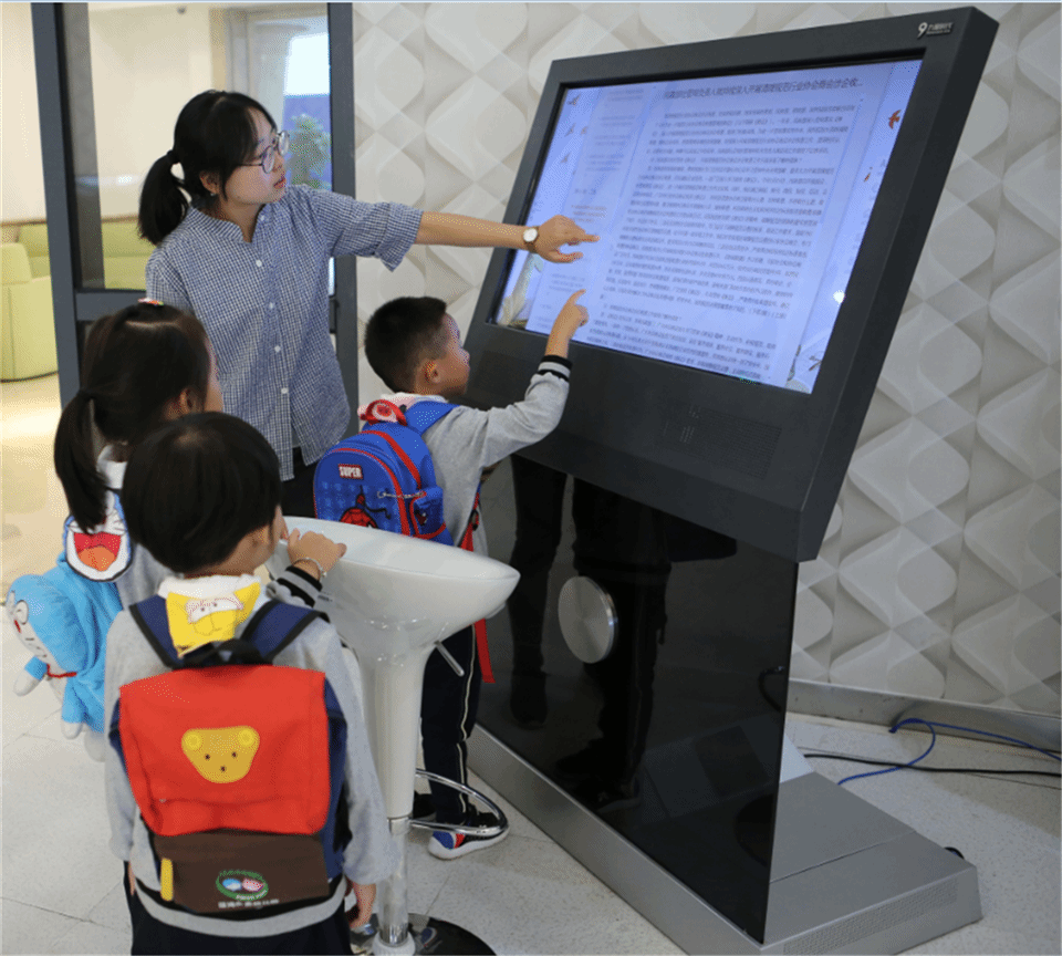 经过安检门禁,图书馆的叔叔阿姨热情接待了我们,并带着我们参观馆内的温馨环境和先进的设备!
