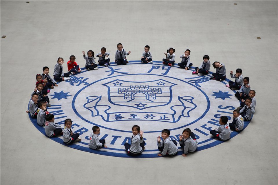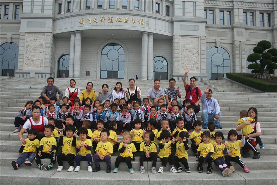 来!和厦门大学的Logo合影一下吧,我们是厦大的小福娃!