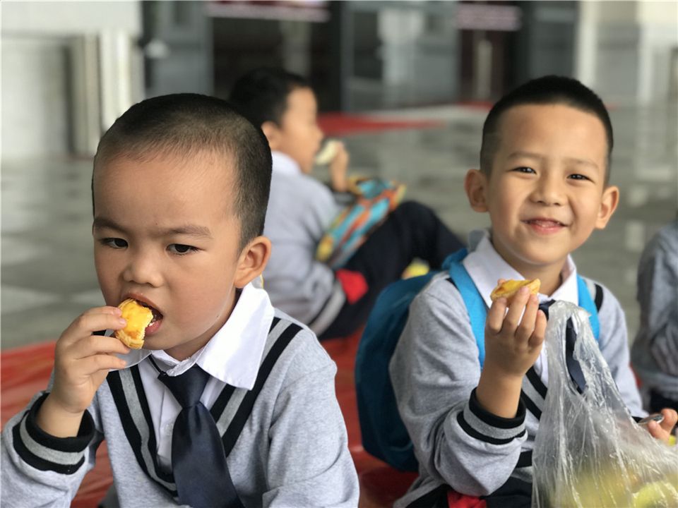 终于,享用美餐的时刻到啦!瞧,我们这群大小馋猫们吃得那个美滋滋呀!