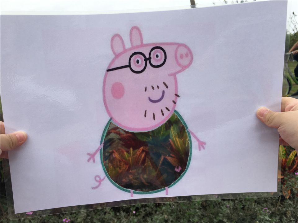 快看,秋天藏在小猪佩奇一家的衣服上。瞧,他们把红花、黄花、绿叶、蓝天、房子统统都穿到身上啦……哈哈,真有趣呀!