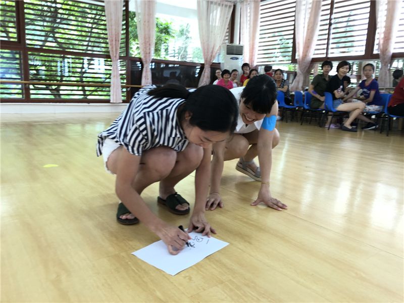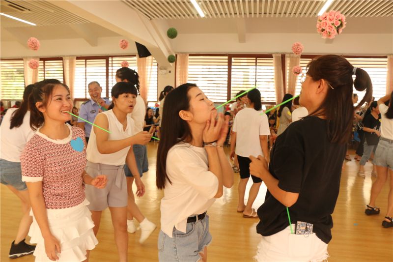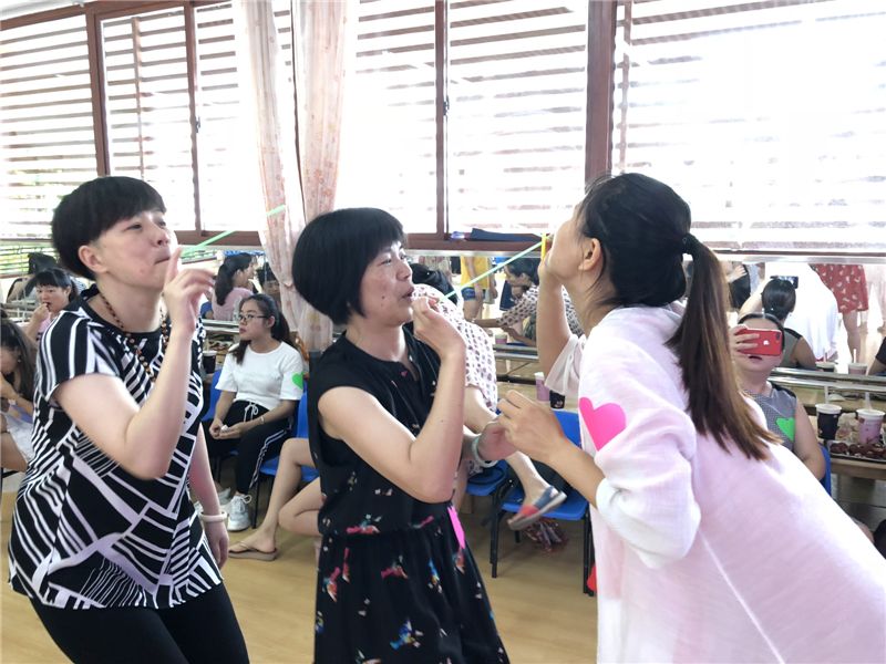 大家最期待的游戏环节到了。第一个游戏《吸管运输》, 第二个《同舟共济》,第三个《传话接力赛》……老师们各显身手,使劲洪荒之力去游戏,真的嗨翻了!
