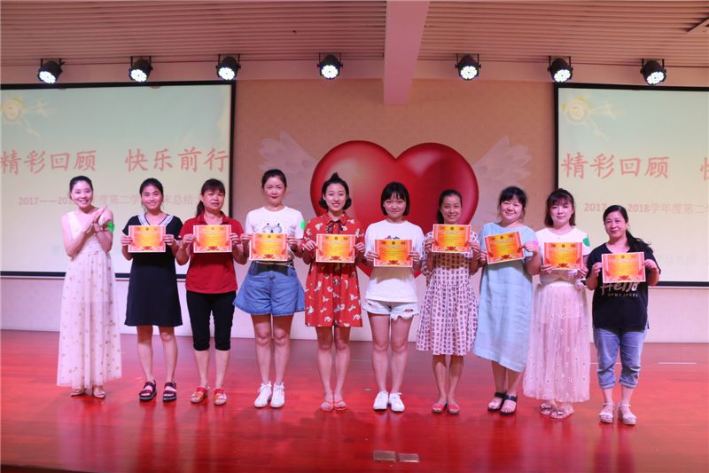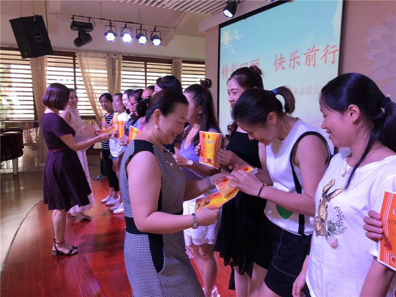 接下来是激动人心的时刻,王园长对本学年中表现突出的教职工进行表彰。奖状虽轻,但是在教师的心中却是沈甸甸的。它既是对教师们一学年来工作的肯定;更是对下学期工作的鞭策和激励。