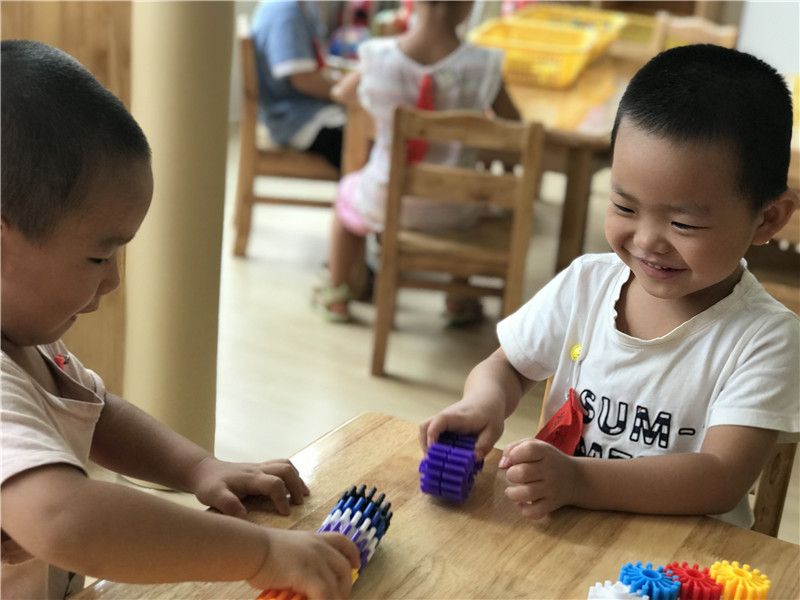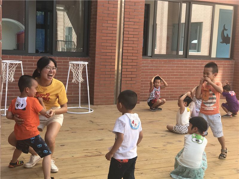 在老师的陪伴下,我们快乐游戏、快乐学习,好开心!