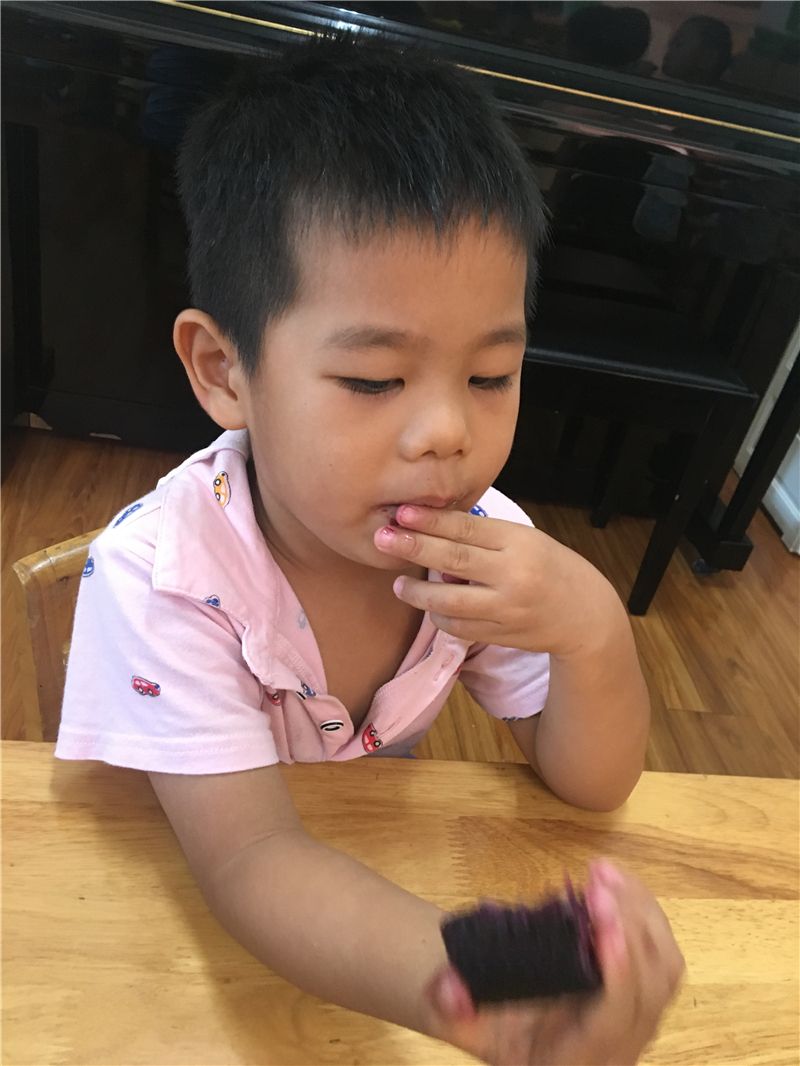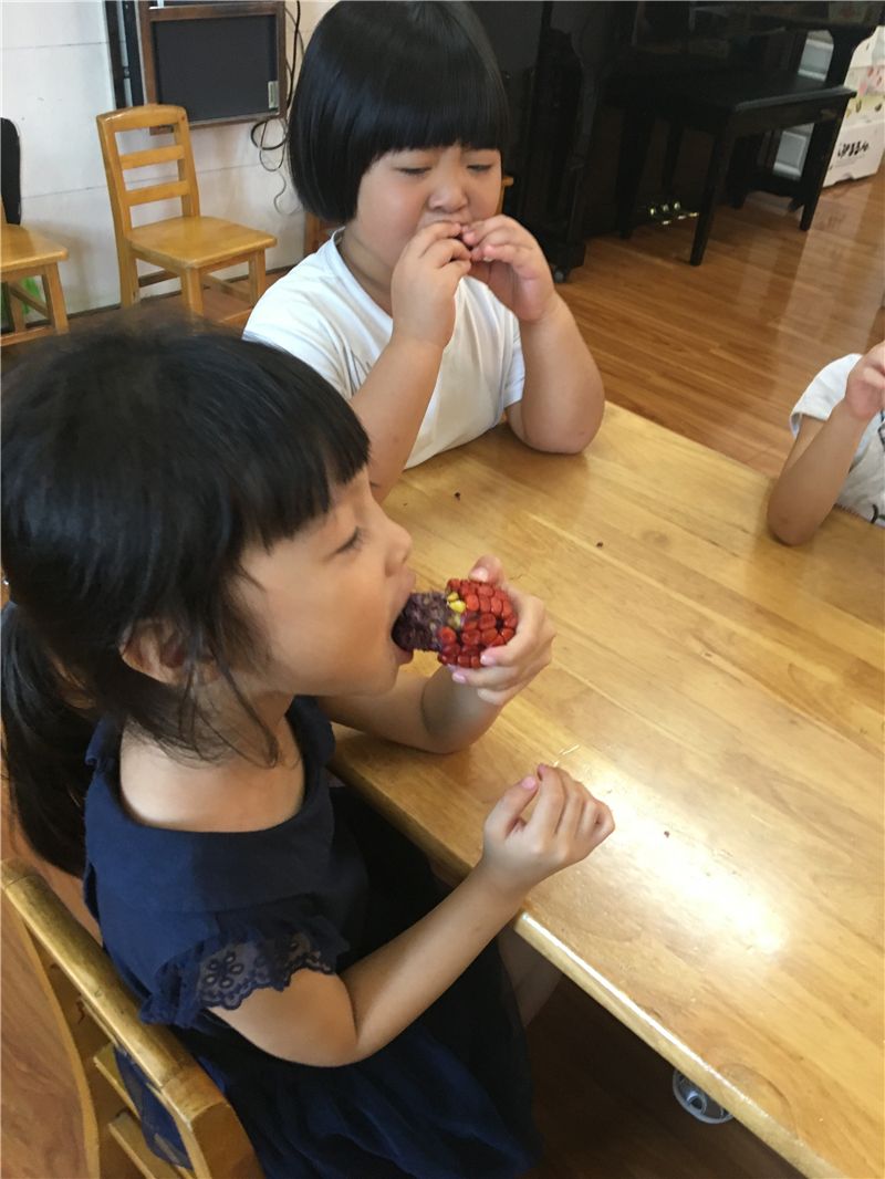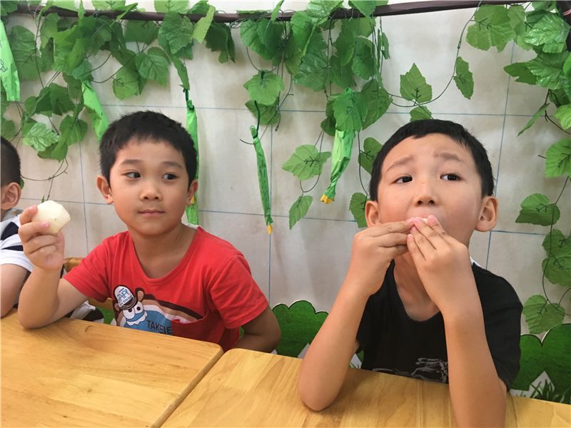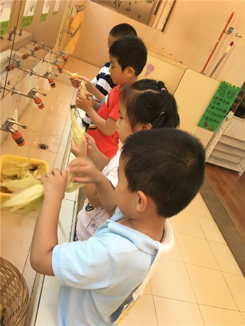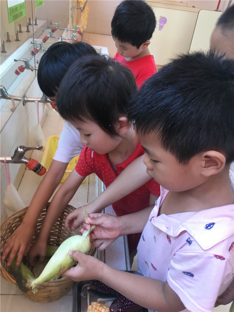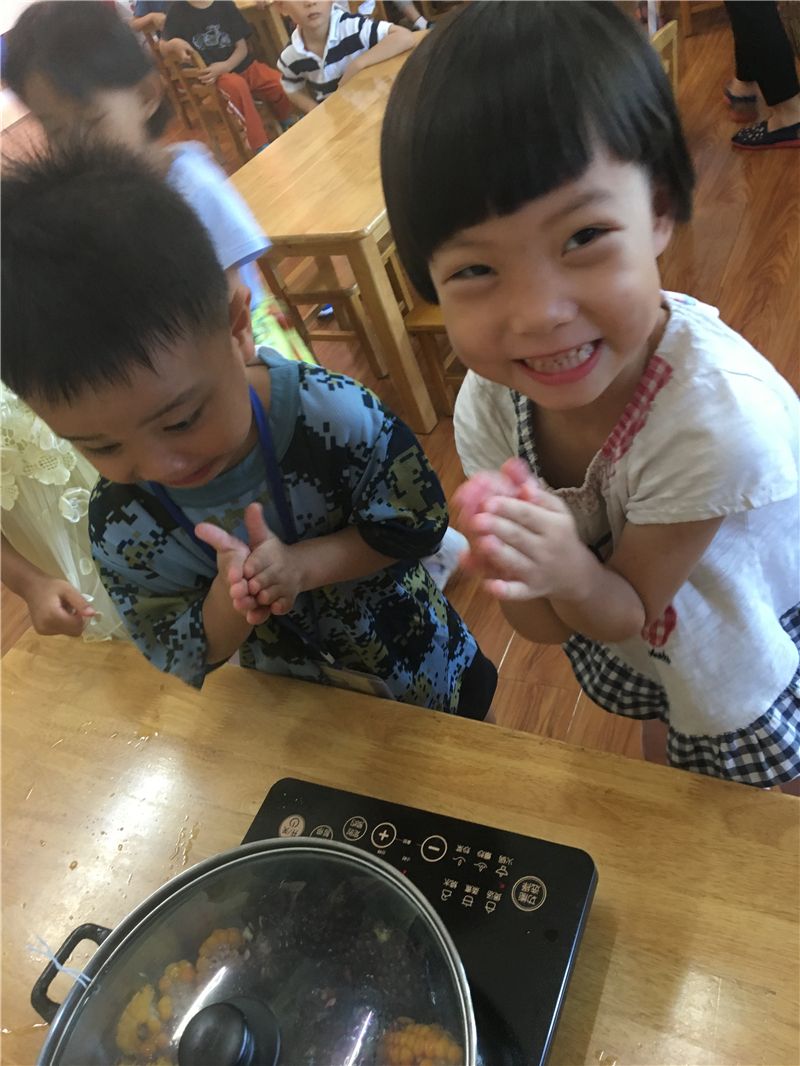 回到班级后,萌娃们又开始忙碌起来了:剥玉米、洗玉米、煮玉米……忙得不乐乎。几分钟后玉米的香味就飘散出来了,小宝小学两个娃儿忍不住要去闻一闻:“怎么是红薯的香味,你闻看看!”“对呀!真的是红薯的香味!”“太香呀。好想吃呀!”……新鲜出炉的、自己亲手种植的玉米,不管它是黄玉米,还是紫玉米都成了萌娃们的舌尖上的美食。萌娃们边吃边啧啧称赞:“太美味了啦!”