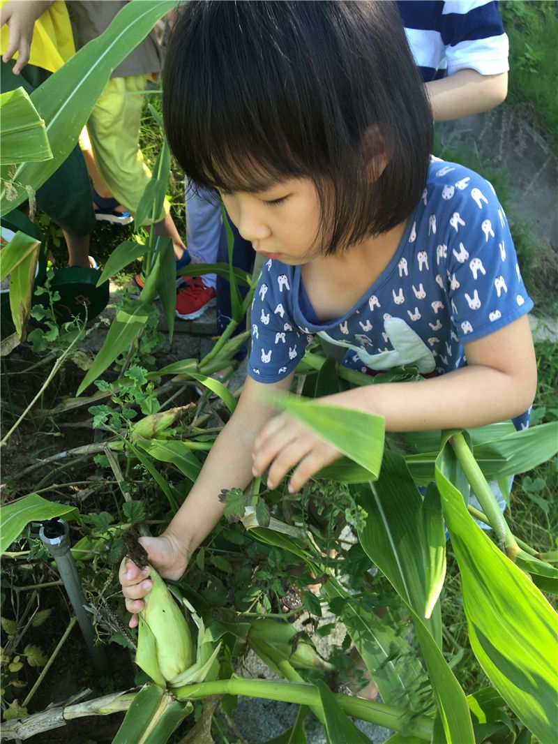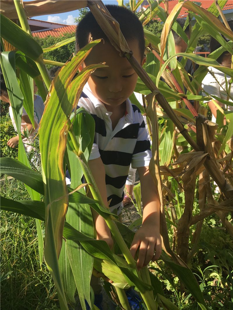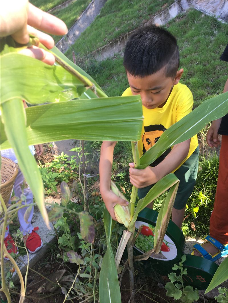 萌娃们迫不及待地爬到了开心农场上先找到自己亲手种植的玉米,变身为小农夫。瞧,六六快速地找到了一根玉米棒,一手扶着玉米杆一手拧着玉米棒,用力一拧成功摘下玉米棒,开了个好头彩。接着,萌娃们一个个都把自己找到的玉米棒摘下来了。看,方寸之地也能收获整整一小筐的玉米,乐坏了萌娃们。