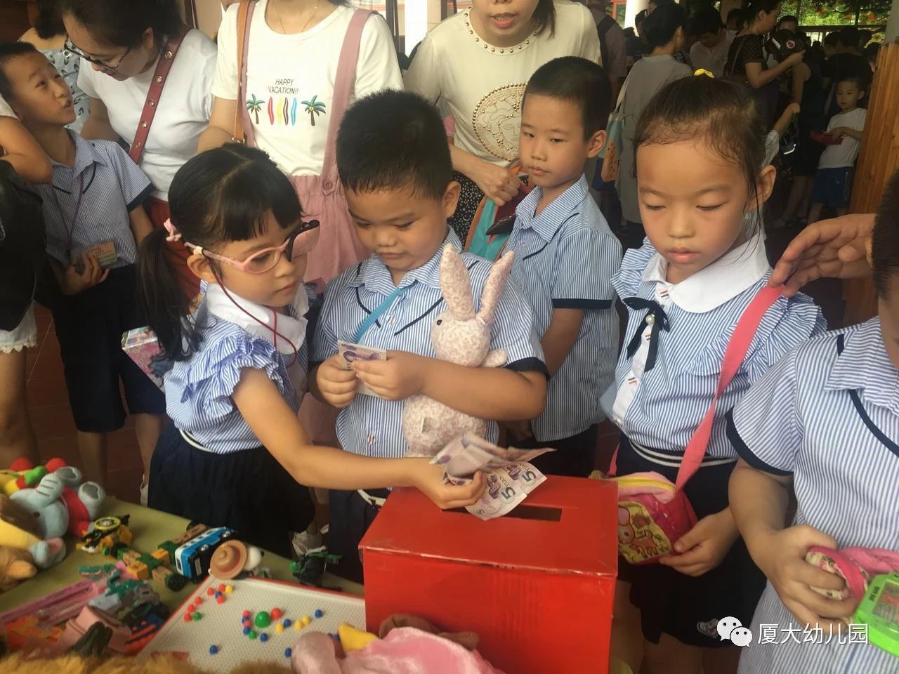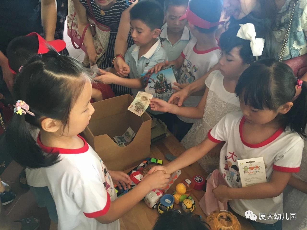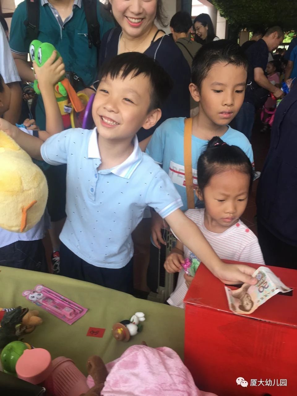 本次义卖活动,孩子们通过交换平时不常用的物品,体会到分享的快乐。他们不仅可以得到物美价廉的物品,更能增强货币购买能力、语言表达能力及社会交往能力。