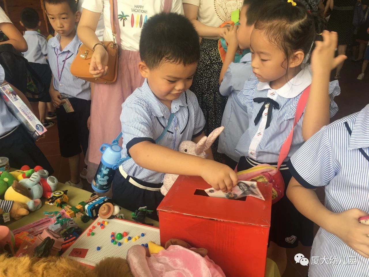 最后义卖的款项由家委会向幼儿园赠送纪念品,为孩子们三年幼儿园学习生活画上圆满的记号。