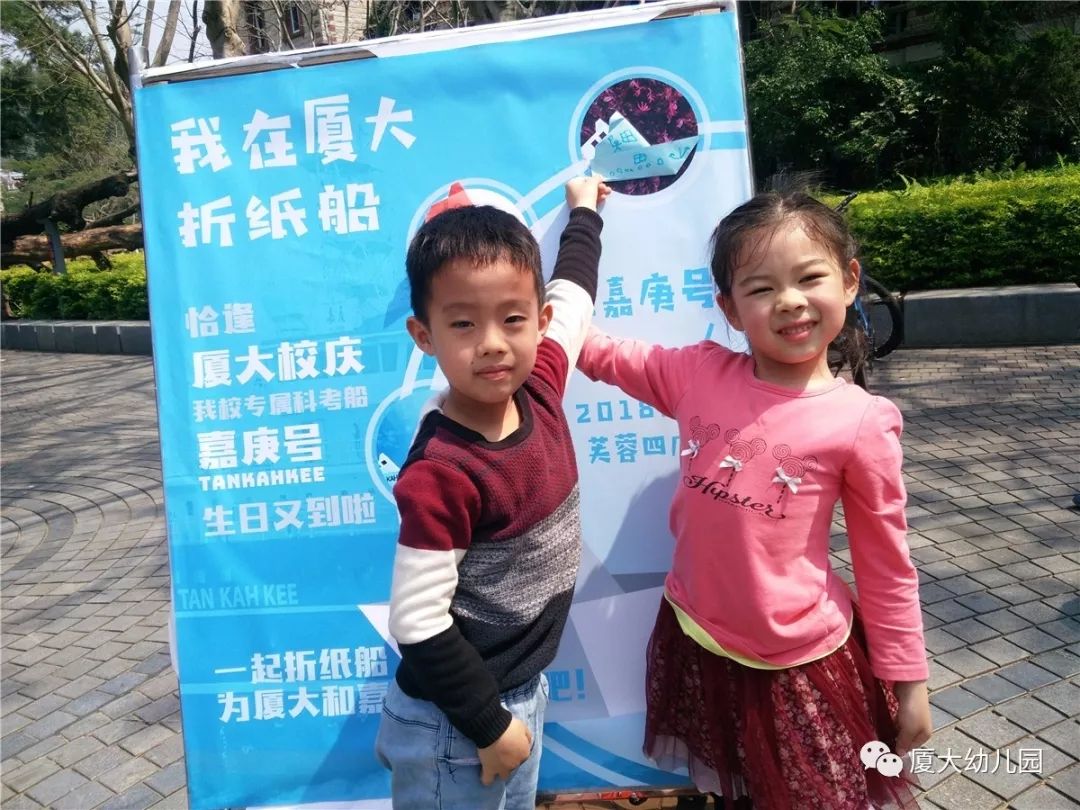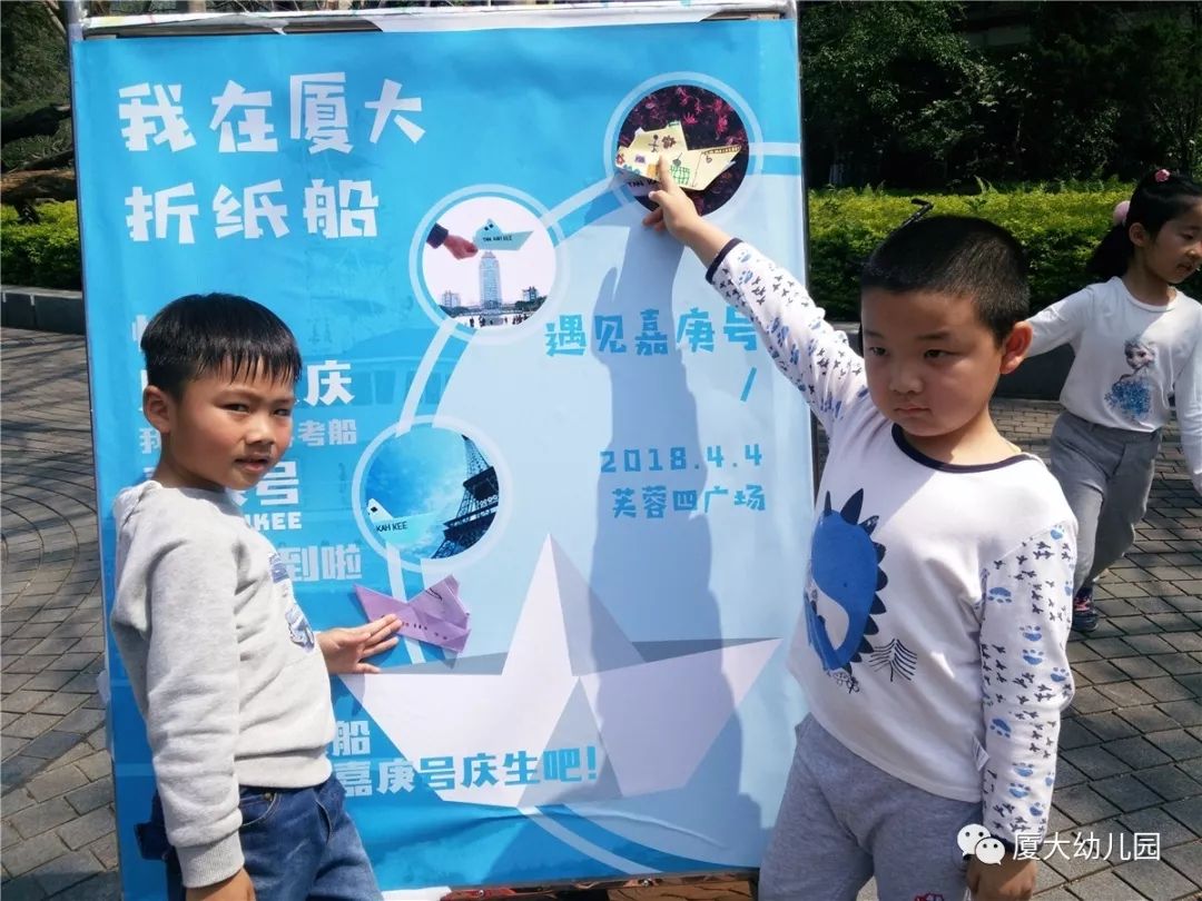 猜猜看,小小厦大娃会在“厦大97”校庆做些什么?参观、看表演?都不够。一直对“嘉庚号”科考船保持着热情的大班段孩子继“迎接嘉庚号新朋友TARA”主题绘画后,又在新闻传播学院哥哥姐姐的带领下,用五颜六色的纸张折出专属自己的“嘉庚号”来庆祝厦大的生日。