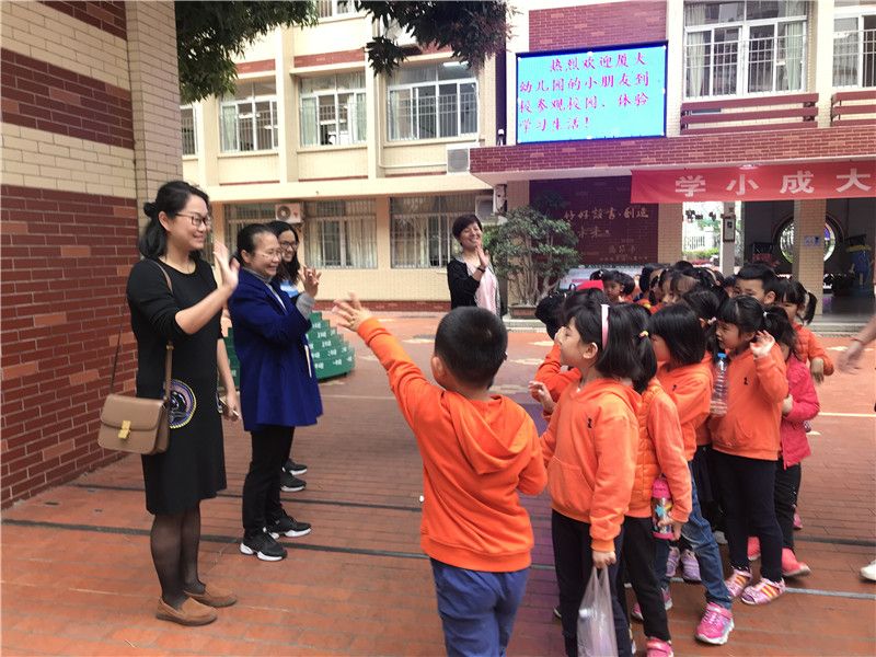 《3—6岁儿童学习与发展指南》明确指出:带领幼儿园大班幼儿参观小学,讲讲小学有趣的活动,唤起他们对小学生活的好奇和向往,为入小学做好心理准备。的确,儿童从以游戏为基本活动的幼儿园进入以正规课业学习为主导的小学,将会面临巨大的挑战。在演武小学领导的周密安排及师生的大力配合下,周一上午我园大班段小朋友在老师的带领下,与小学实现了亲密接触,体现我园以“儿童为本”理念的幼小衔接活动又深入了一个层次。