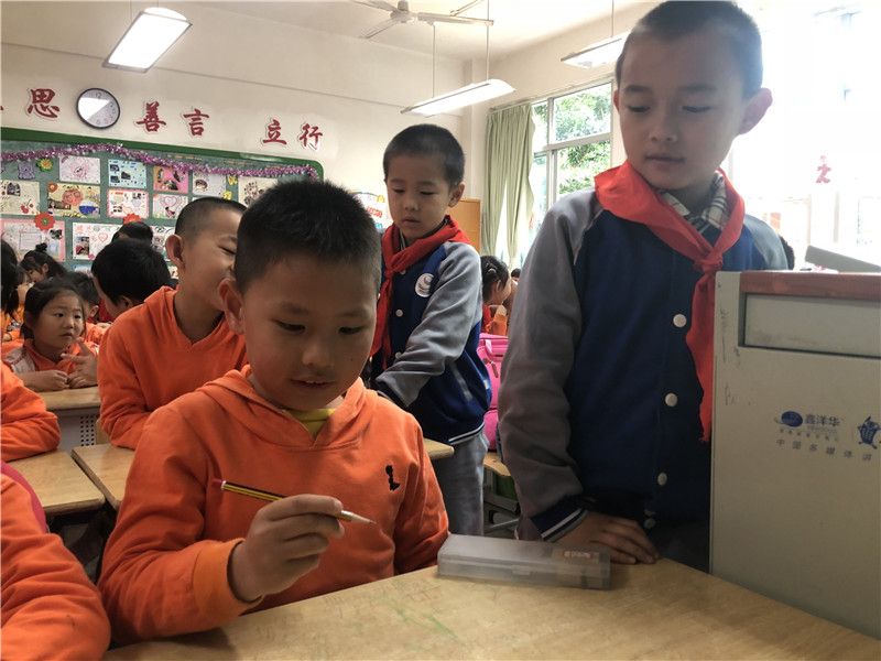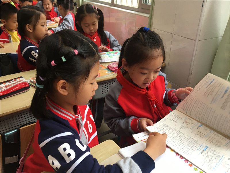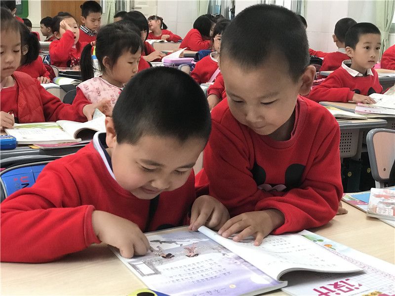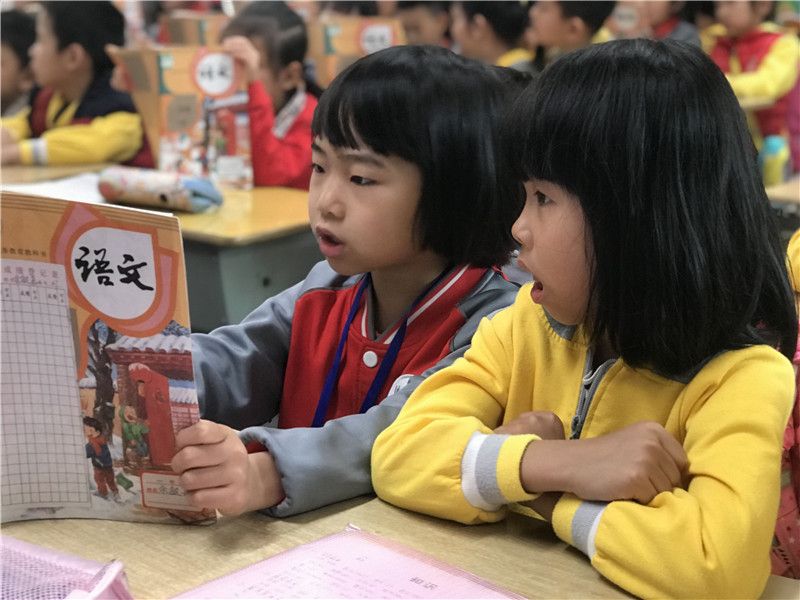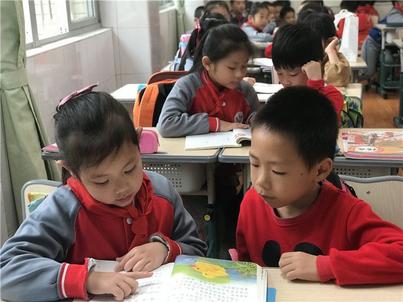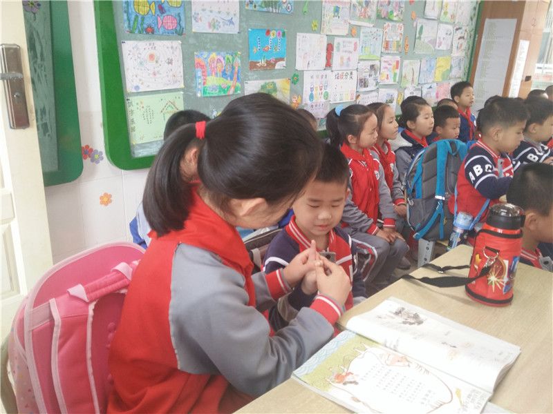 孩子们迫不及待地走进一年级教室,和老师、哥哥姐姐互动起来!在小学生课桌上看书、朗诵、学习规范摆放书本文具、怎样点读、怎样握笔,哥哥姐姐教得努力,孩子们学得认真。