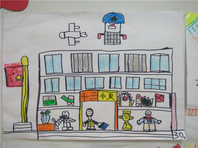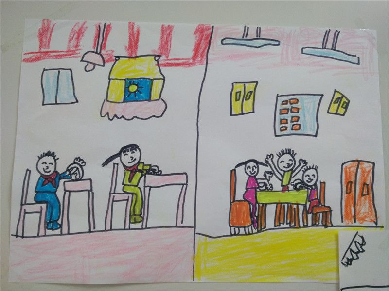 回到幼儿园,孩子们意犹未尽。纷纷拿起画笔画下了自己参观的心得。哈哈!幼儿园和小学的不同,你看得出来吗?