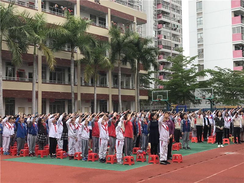 有着丰富内容的升旗仪式让孩子们大开眼界。哥哥姐姐标准的队礼姿势让孩子们好震撼!