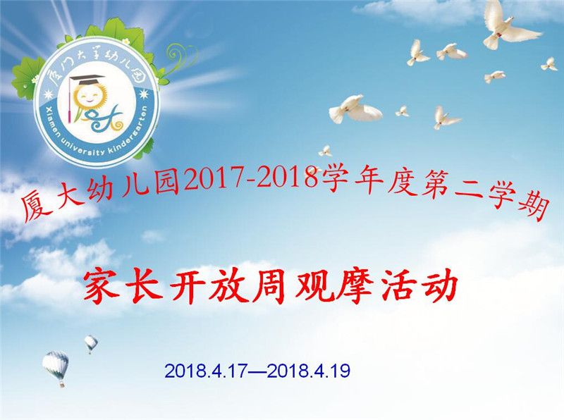 春风拂柳的四月,我园在老师们的精心策划和家长们的积极配合下,圆满结束家长开放周活动!幼儿园丰富多彩的活动,得到了家长们的充分认可,让我们共同分享那一幕幕快乐的瞬间吧!