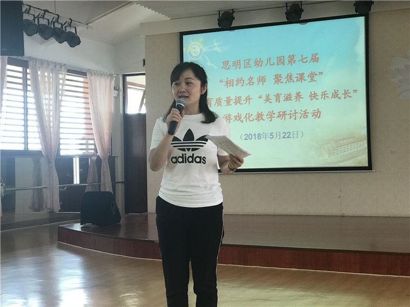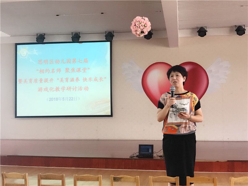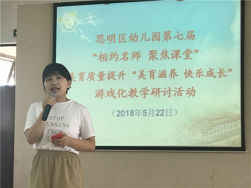 2018年5月22日上午,厦门市思明区幼儿园第七届“相约名师·聚焦课堂”暨美育质量提升“美育滋养·快乐成长”游戏化教学研讨活动在我园顺利召开。来自福建省普通教育教学研究室教研员林媛媛老师、思明区进修学校幼教办教研员林杨、林卉老师及思明区公民办幼儿园近200位幼教同行们参加了此次活动。