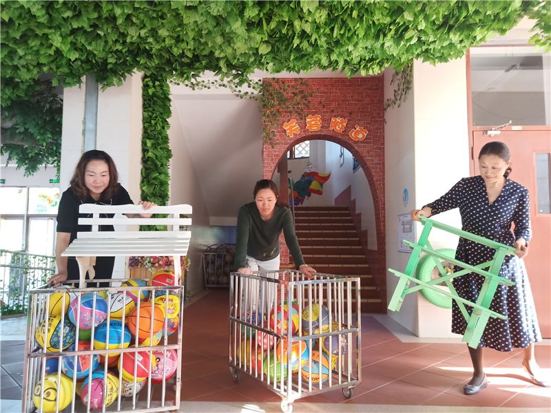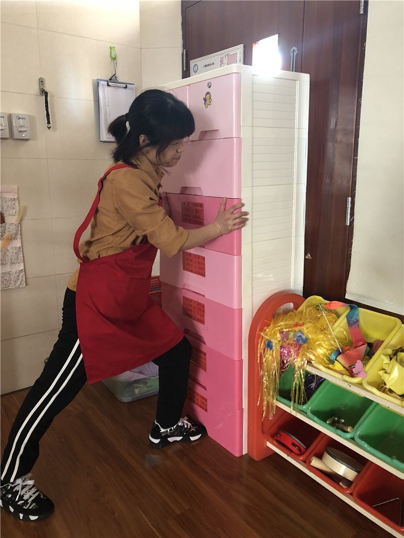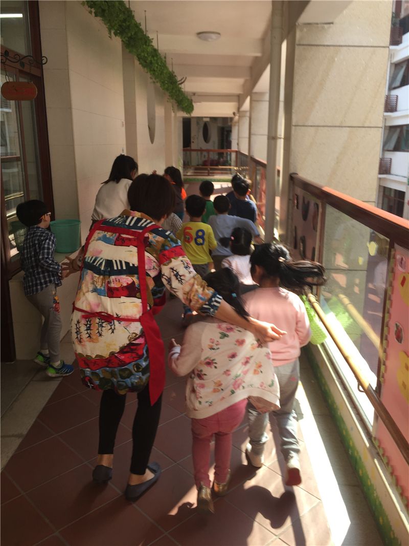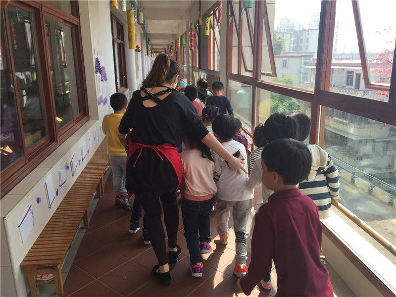 正在各游戏场地组织活动的老师迅速带领幼儿撤离到安全的地方躲避逃生,并锁好门窗。
