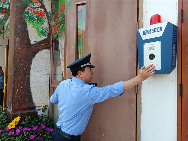 值班保安第一时间拉响校园报警器和一键报警系统,广播通知“坏人来啦!!!”全园立即启动“防暴预案”。