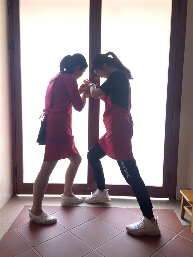 后勤人员迅速奔赴各个楼梯口,随手拿起扫把、椅子,共同把守。