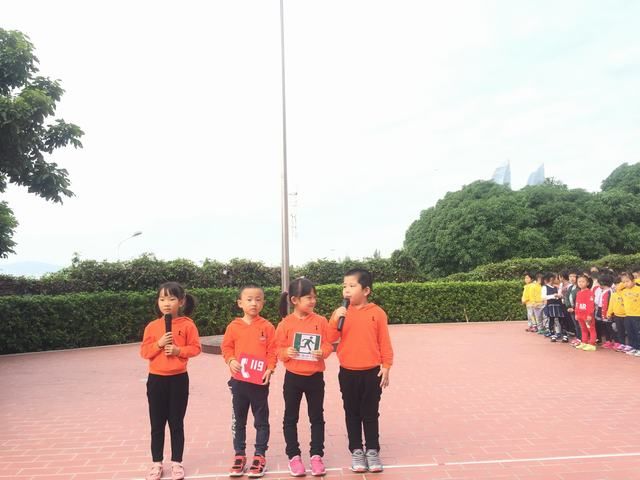 升旗仪式上,孩子们用朗朗上口的儿歌、生动的情景表演,告诉大家遇到火灾不要慌,不要急,湿毛巾捂口鼻,119牢牢记……