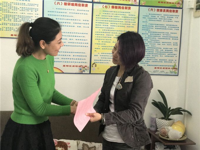 2017年11月22日,王美玲园长一行人来到了位于蜂巢山路的成冠幼儿园。成冠幼儿园苏园长早早就等候在门口,在她带领下王园长一行参观了园所环境。